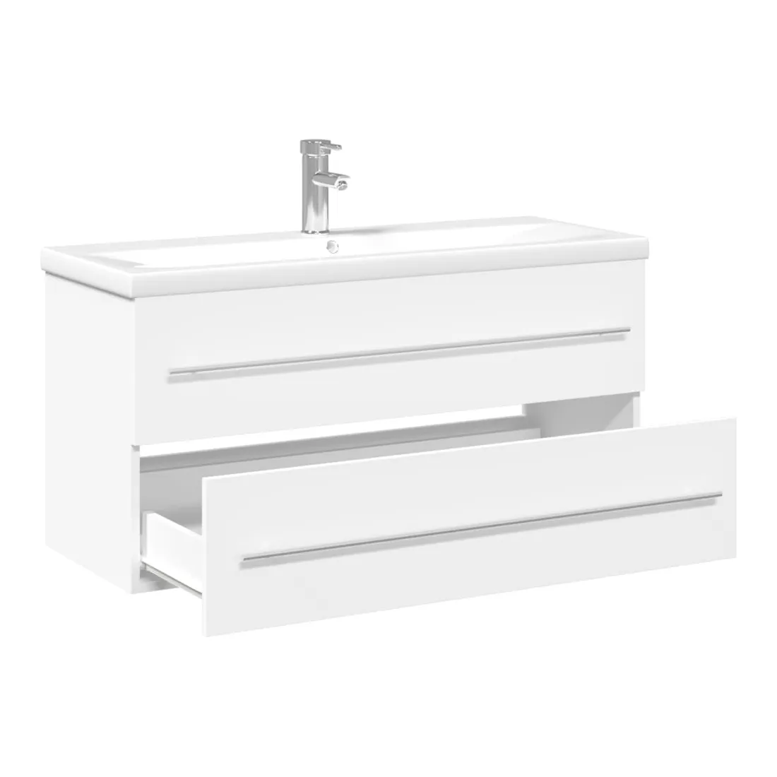 Armoire lavabo de salle de bain avec bassin intégré blanc