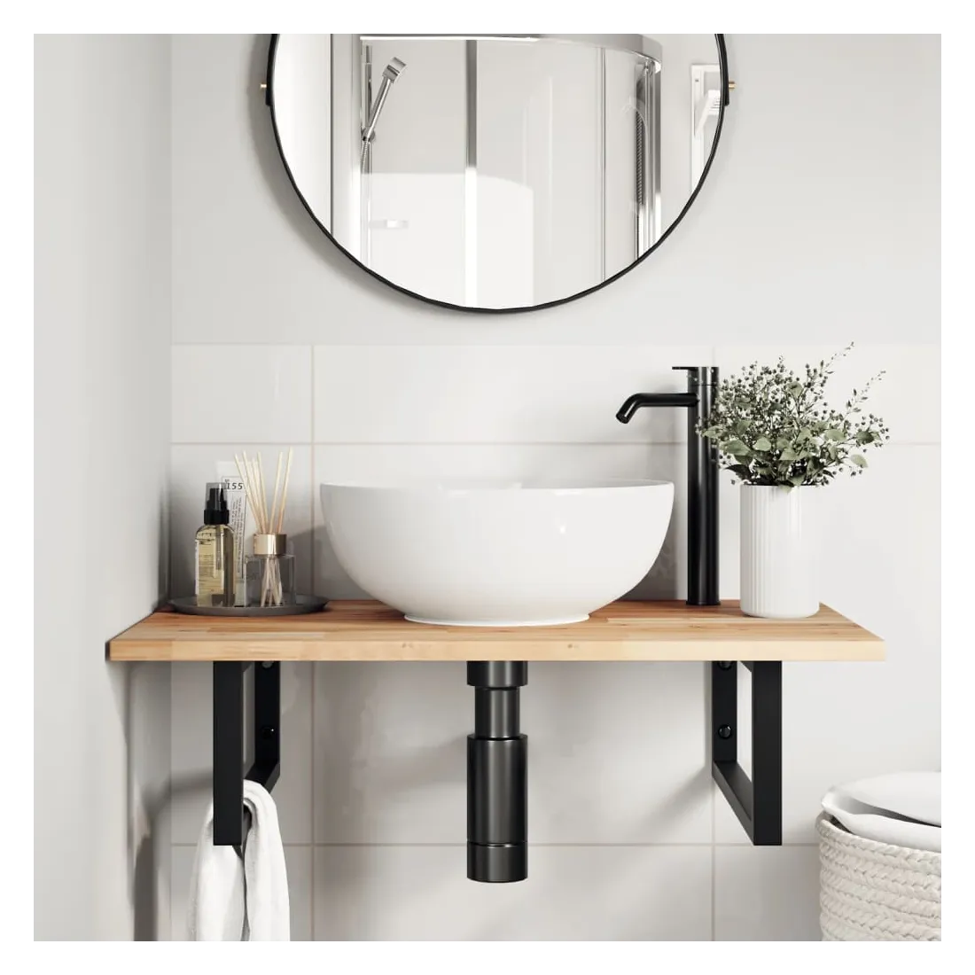 Améliorez votre salle de bain avec ce dessus de meuble-lavabo en bois pour une touche de charme rustique ! Matériau robuste et stable : le bois d'acacia massif est connu pour sa solidité et sa durabilité. Ses couleurs variées et ses grains uniques lui confèrent un aspect attrayant. Avec une excellente stabilité et résistance aux intempéries, il est idéal pour la fabrication de mobilier d'intérieur et d'extérieur.Surface non traitée : ce dessus de table est fabriqué en bois d'acacia non traité, et vous pouvez conserver sa couleur d'origine ou le personnaliser avec de la peinture ou de la laque pour l'adapter à vos préférences.Utilisation polyvalente : ce comptoir multifonctionnel peut être associé à différentes bases pour un large éventail d'utilisations, telles qu'un poste de travail dans la cuisine, un établi dans le garage, une étagère dans la salle de bain ou un bureau.Entretien facile : grâce à sa surface lisse, le plan de travail est facile à nettoyer avec un chiffon humide et nécessite moins d'entretien. Bon à savoir :Chaque article est unique, avec des variations de couleurs et de grains. La livraison est aléatoire, ce qui garantit l'exclusivité et l'individualité de votre produit.