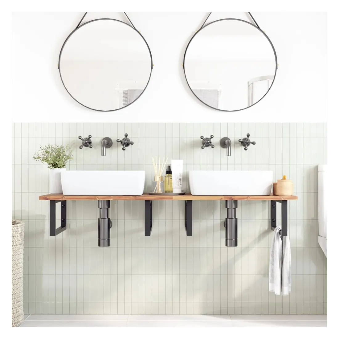 Améliorez votre salle de bain avec ce dessus de meuble-lavabo en bois pour une touche de charme rustique ! Matériau robuste et stable : le bois d'acacia massif est connu pour sa solidité et sa durabilité. Ses couleurs variées et ses grains uniques lui confèrent un aspect attrayant. Avec une excellente stabilité et résistance aux intempéries, il est idéal pour la fabrication de mobilier d'intérieur et d'extérieur.Surface non traitée : ce dessus de table est fabriqué en bois d'acacia non traité, et vous pouvez conserver sa couleur d'origine ou le personnaliser avec de la peinture ou de la laque pour l'adapter à vos préférences.Utilisation polyvalente : ce comptoir multifonctionnel peut être associé à différentes bases pour un large éventail d'utilisations, telles qu'un poste de travail dans la cuisine, un établi dans le garage, une étagère dans la salle de bain ou un bureau.Entretien facile : grâce à sa surface lisse, le plan de travail est facile à nettoyer avec un chiffon humide et nécessite moins d'entretien. Bon à savoir :Chaque article est unique, avec des variations de couleurs et de grains. La livraison est aléatoire, ce qui garantit l'exclusivité et l'individualité de votre produit.