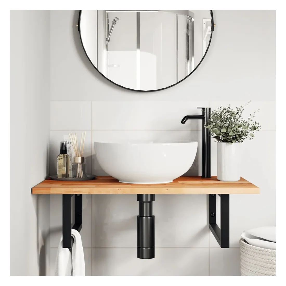 Améliorez votre salle de bain avec ce dessus de meuble-lavabo en bois pour une touche de charme rustique ! Matériau robuste et stable : le bois d'acacia massif est connu pour sa solidité et sa durabilité. Ses couleurs variées et ses grains uniques lui confèrent un aspect attrayant. Avec une excellente stabilité et résistance aux intempéries, il est idéal pour la fabrication de mobilier d'intérieur et d'extérieur.Surface finie à l’huile : ce dessus de meuble est fait de bois d'acacia avec une finition à l'huile qui le rend plus résistant à l'humidité et aux dégâts d'eau, tout en préservant son caractère unique.Utilisation polyvalente : ce comptoir multifonctionnel peut être associé à différentes bases pour un large éventail d'utilisations, telles qu'un poste de travail dans la cuisine, un établi dans le garage, une étagère dans la salle de bain ou un bureau.Entretien facile : grâce à sa surface lisse, le dessus est facile à nettoyer avec un chiffon humide. Bon à savoir :Chaque article est unique, avec des variations de couleurs et de grains. La livraison est aléatoire, ce qui garantit l'exclusivité et l'individualité de votre produit.Il est recommandé de réappliquer une finition à l’huile pour conserver sa qualité et son apparence au moins une fois par an.