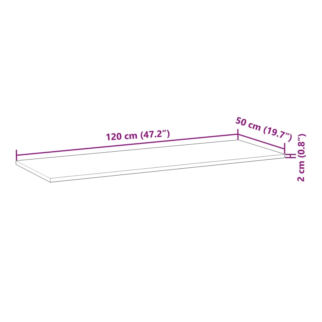 - 120 x 50 x 2 cm