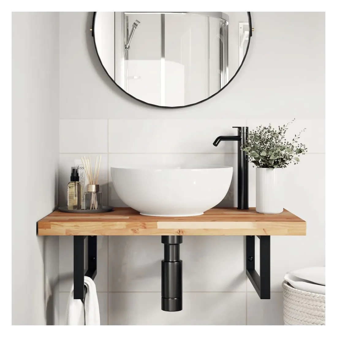 Améliorez votre salle de bain avec ce dessus de meuble-lavabo en bois pour une touche de charme rustique ! Matériau robuste et stable : le bois d'acacia massif est connu pour sa solidité et sa durabilité. Ses couleurs variées et ses grains uniques lui confèrent un aspect attrayant. Avec une excellente stabilité et résistance aux intempéries, il est idéal pour la fabrication de mobilier d'intérieur et d'extérieur.Surface finie à l’huile : ce dessus de meuble est fait de bois d'acacia avec une finition à l'huile qui le rend plus résistant à l'humidité et aux dégâts d'eau, tout en préservant son caractère unique.Utilisation polyvalente : ce comptoir multifonctionnel peut être associé à différentes bases pour un large éventail d'utilisations, telles qu'un poste de travail dans la cuisine, un établi dans le garage, une étagère dans la salle de bain ou un bureau.Entretien facile : grâce à sa surface lisse, le dessus est facile à nettoyer avec un chiffon humide. Bon à savoir :Chaque article est unique, avec des variations de couleurs et de grains. La livraison est aléatoire, ce qui garantit l'exclusivité et l'individualité de votre produit.Il est recommandé de réappliquer une finition à l’huile pour conserver sa qualité et son apparence au moins une fois par an.