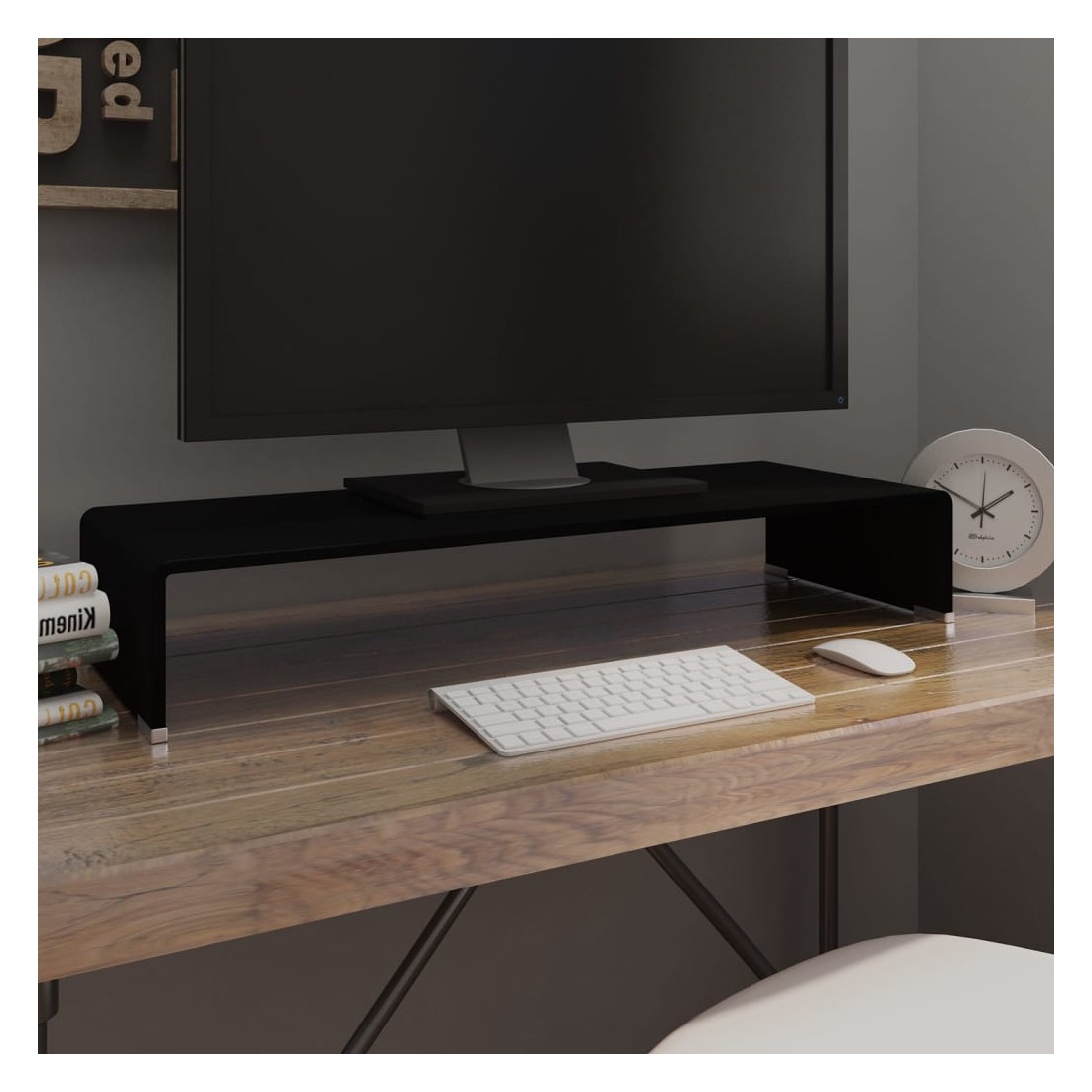 Meuble TV/support pour moniteur 80x30x13 cm verre noir