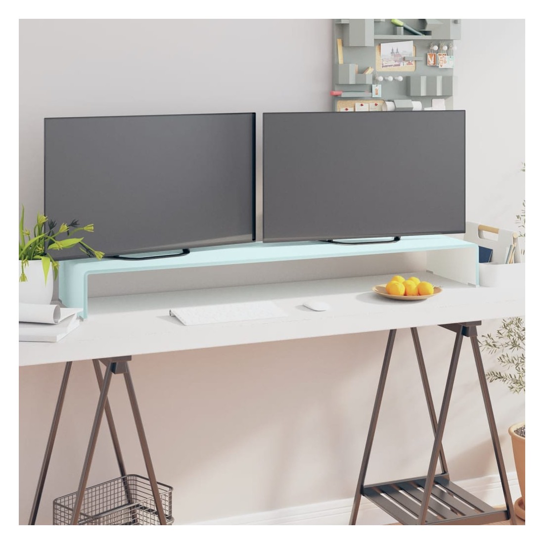Ce support TV pratique est doté d'une construction en verre trempé. Le design élégant et profilé de ce meuble TV raffiné ajoutera une touche moderne à votre espace de vie. Cette étagère en verre peut être utilisée comme support TV ou support pour votre moniteur d'ordinateur, téléviseur, ordinateur portable et autres appareils multimédia. Avec une étagère en verre qui soulève le moniteur, vous aurez une meilleure vision de l'écran en étant confortablement assis, ce qui permet à réduire la tension et l'inconfort sur votre cou ou dos. L'espace en dessous peut accueillir votre lecteur de DVD, console de jeux, appareil de diffusion en continu, récepteurs et des supports média. Le cadre en verre est trempé pour ajouter de la résistance et de la sécurité. La surface lisse est facile à nettoyer avec seulement un chiffon humide.