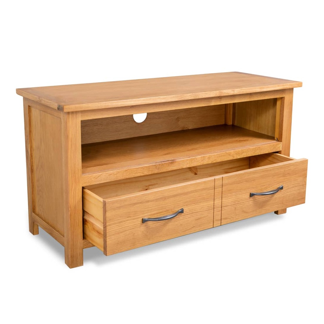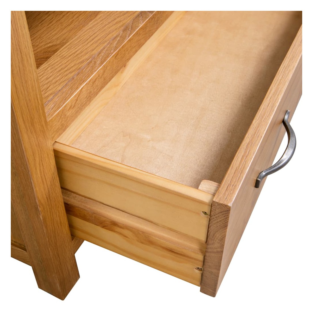 Ce meuble TV en bois de haute qualité dégage un charme rustique qui en fera un excellent ajout à votre salon. Ce meuble TV solide et robuste est fabriqué en chêne. Le dessus de table solide offre une surface stable et sécurisée sur laquelle vous pouvez placer votre téléviseur, un panier de fruits ou un vase ou d'autres objets décoratifs. Ce mobilier pour télévision comporte un grand tiroir et un compartiment ouvert, fournissant amplement d'espace pour stocker vos appareils multimédia, livres et divers autres articles. L'assemblage est facile.