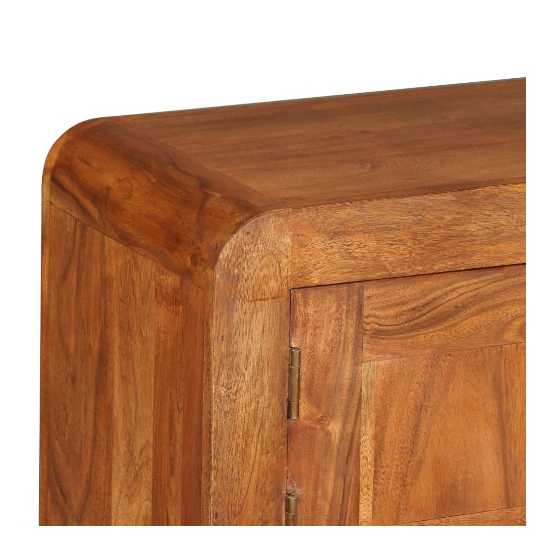 Ce meuble TV élégant et pratique sera un ajout intemporel à votre décor. Il peut également être utilisé comme meuble HiFi ou buffet. Cette armoire à plasma est fabriquée en bois d'acacia massif avec une finition miel. L'acacia est un bois dur tropical durable. Le meuble TV est entièrement fait à la main et les beaux grains de bois rendent chaque meuble unique et légèrement différent l'un de l'autre. Ses 2 armoires et 2 étagères offrent amplement d'espace pour ranger les appareils multimédias, les supports média et tout autre élément que vous souhaitez afficher ou garder à portée de main. Chaque armoire a une porte avec une charnière spéciale, de cette façon la porte n'a pas besoin d'une poignée de porte. L'article est déjà assemblé ; aucun assemblage n'est requis. Remarque importante : les couleurs varient d'une pièce à l'autre, rendant chaque pièce unique. La livraison est aléatoire, garantissant l'exclusivité et l'individualité de votre produit.
