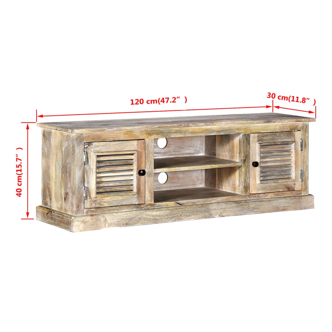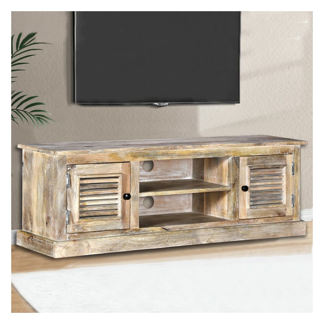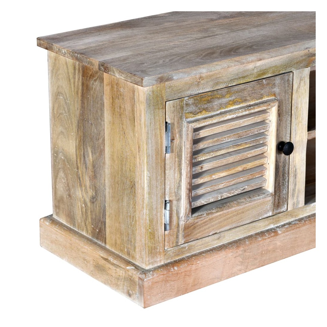 Ce meuble de télévision rustique est la voie à suivre si vous cherchez à ajouter un peu de style vintage au décor de votre maison. L'armoire latérale est faite de bois de manguier massif qui est stable, durable et beau, et l'artisanat ajoute à son style rétro spectaculaire. Le bois de manguier a été traité dans un style distinctif pour le rendre plus résistant à l’usure tout en lui permettant de garder son charme naturel. Ce meuble TV dispose de 2 armoires et de 2 étagères qui seront idéales pour garder votre lecteur DVD, console de jeu, appareil de diffusion en continu et vos supports média soigneusement organisés. L'armoire Hi-Fi peut également être utilisée comme armoire latérale, etc. Remarque : l'article est déjà assemblé ; aucun assemblage n'est requis. Les couleurs et les motifs de grain peuvent varier d'une pièce à l'autre, rendant chacune de nos armoires TV unique. La livraison est aléatoire, ce qui garantit l'exclusivité et l'individualité de votre produit.