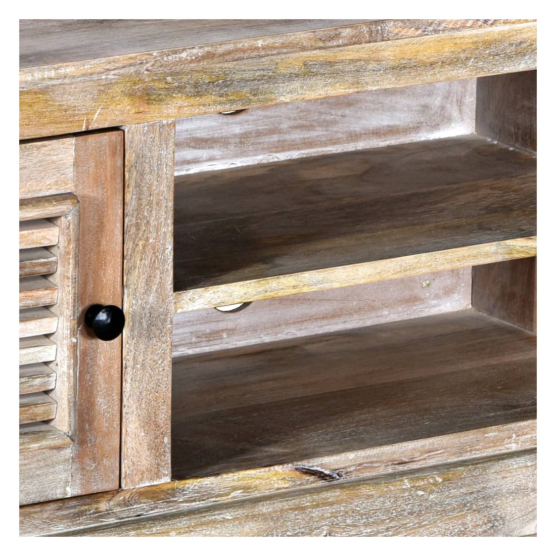 Ce meuble de télévision rustique est la voie à suivre si vous cherchez à ajouter un peu de style vintage au décor de votre maison. L'armoire latérale est faite de bois de manguier massif qui est stable, durable et beau, et l'artisanat ajoute à son style rétro spectaculaire. Le bois de manguier a été traité dans un style distinctif pour le rendre plus résistant à l’usure tout en lui permettant de garder son charme naturel. Ce meuble TV dispose de 2 armoires et de 2 étagères qui seront idéales pour garder votre lecteur DVD, console de jeu, appareil de diffusion en continu et vos supports média soigneusement organisés. L'armoire Hi-Fi peut également être utilisée comme armoire latérale, etc. Remarque : l'article est déjà assemblé ; aucun assemblage n'est requis. Les couleurs et les motifs