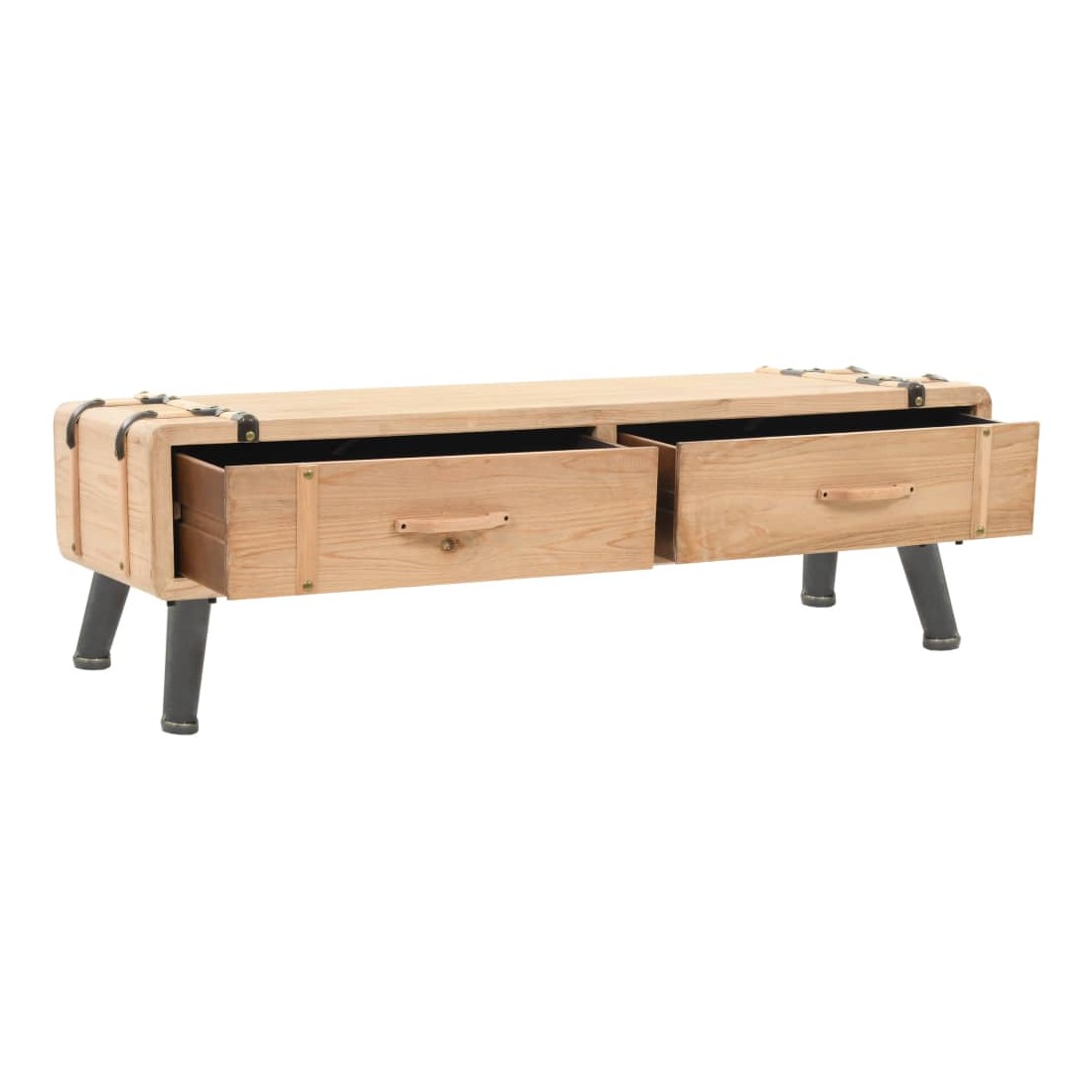 Ce meuble TV de style rétro dégage un charme rustique qui ajoutera une touche décorative à la décoration de votre chambre ou de votre salon. Cette armoire HiFi très stable et durable a été fabriquée en bois de sapin massif. Le dessus robuste est idéal pour placer votre téléviseur ou votre chaîne hi-fi, ainsi que certains objets décoratifs tels que des vases ou des paniers de fruits. Les tiroirs offrent suffisamment d'espace pour ranger votre lecteur DVD, votre console de jeux, votre périphérique de streaming, vos supports multimédia, etc. de manière ordonnée. Le design spécial des bagages contribue au style vintage de ce buffet bas. L'assemblage est facile.