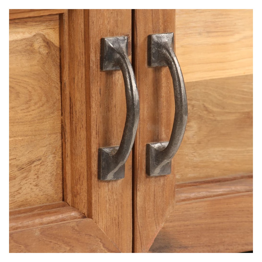 Ce meuble TV dégage un charme rustique et sera un excellent supplément à votre intérieur. Le meuble TV est fabriqué en teck recyclé qui a reçu une belle finition par polissage et laquage pour lui donner un aspect raffiné. Les beaux grains de bois font de chaque meuble un objet unique et légèrement différent l'un de l'autre. Ce meuble TV a une surface solide et stable sur laquelle vous pouvez placer votre téléviseur, une corbeille de fruits, un vase et d’autres objets. Ce buffet comprend une armoire et deux compartiments de rangement, offrant suffisamment d'espace pour ranger des périphériques multimédias, des supports multimédias et tout autre article que vous souhaitez garder à portée de main. Le cadre en acier ajoute à la fois à la robustesse et à la stabilité du meuble ainsi qu'à so