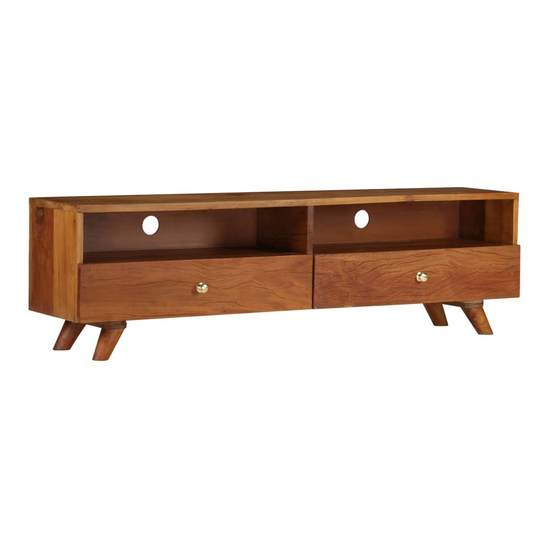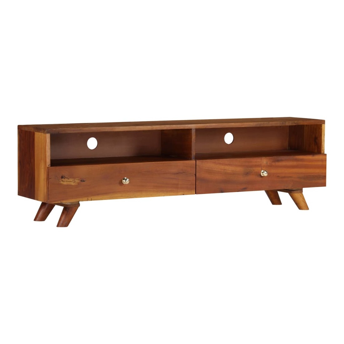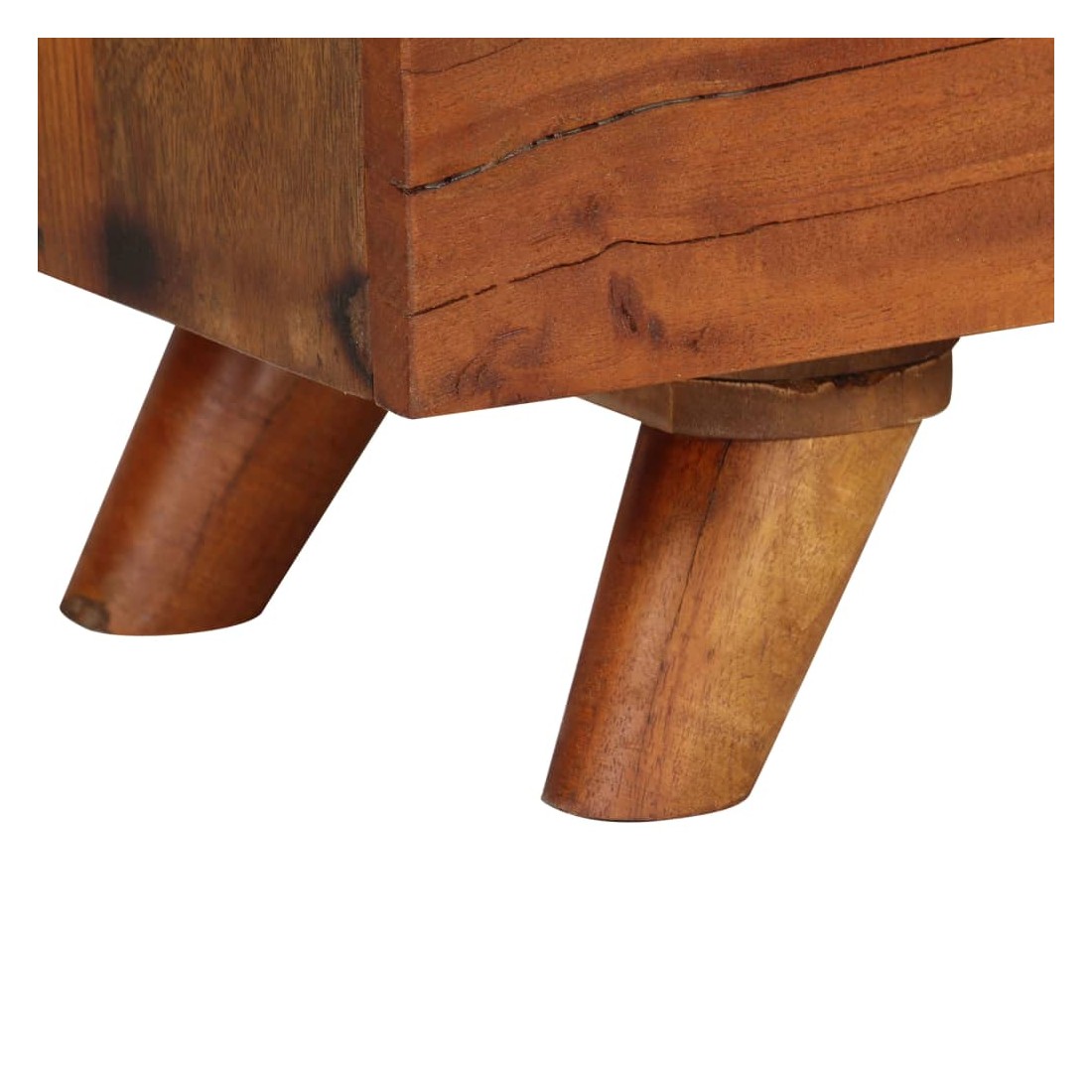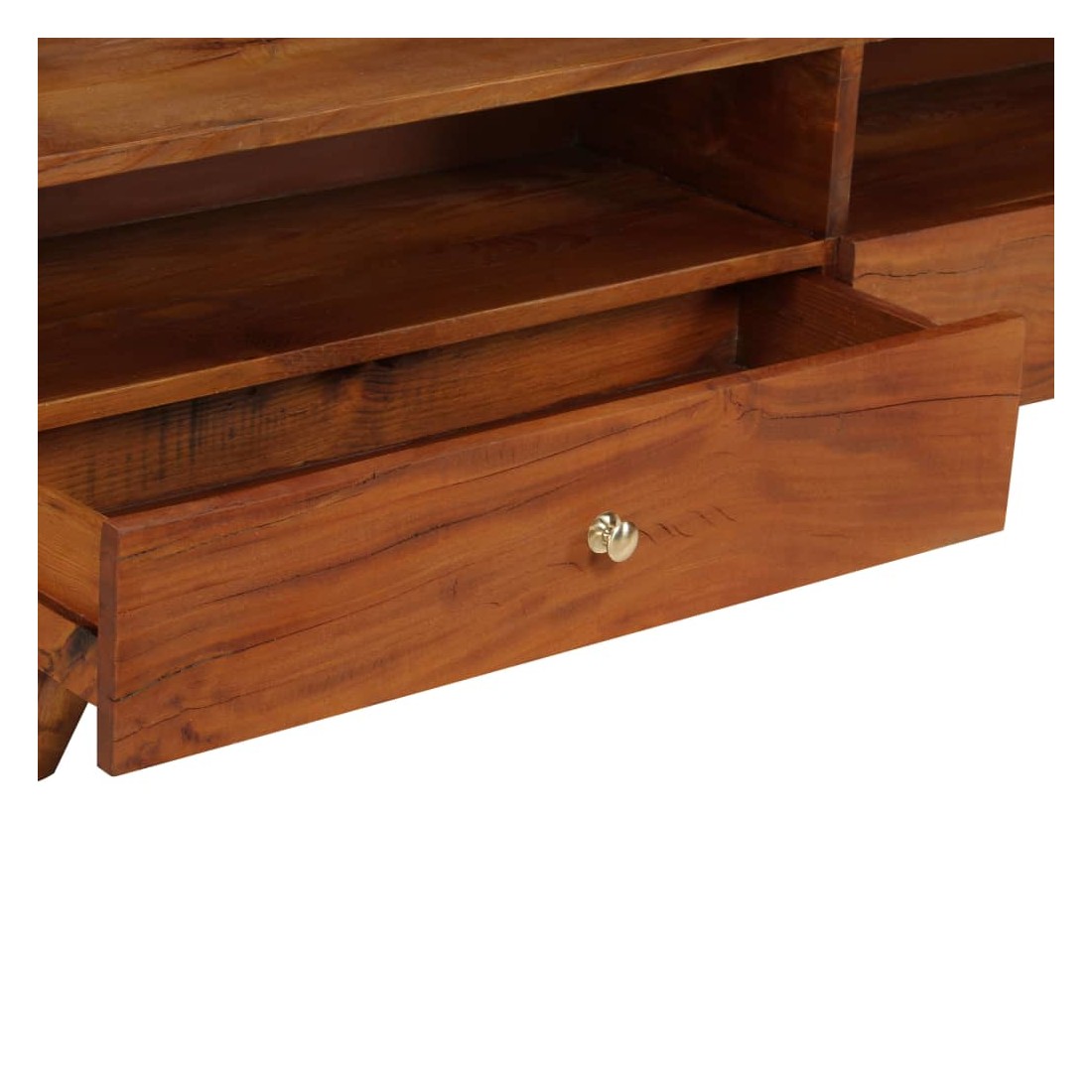Le meuble de télévision en bois rétro a un design sobre et pratique et conviendra à toute décoration intérieure. Le meuble TV est très stable et durable. Il dispose de 2 armoires et de 2 étagères ouvertes pour ranger les appareils multimédia, les consoles de jeu et les magazines. Le meuble TV peut également être utilisé comme meuble d'appoint, meuble hi-fi, etc. Le meuble de télévision est fait de bois de récupération solide provenant des solives, des planchers et des poutres de soutènement de vieux bâtiments démolis et peut comprendre différents types de bois tels que la pinède, le teck, le hêtre, le chêne, le cèdre, le bois de manguier, d'acacia, etc. Cela signifie que le bois de récupération conserve les caractéristiques de ces différents types de bois. Le bois de récupération est déjà vieilli, érodé et séché, donc il ne rétrécit pas et se plie pas. Les signes d'usure et la structure de grain visible confèrent à chaque pièce sa propre histoire et son aspect unique. Ce meuble TV est entièrement fait à la main et la qualité de l'artisanat s'ajoute à son style rétro spectaculaire. Chaque étape du processus est effectuée avec le plus grand soin, qu'il s'agisse de la recombinaison, le polissage, la peinture ou le cirage. Remarque importante : les couleurs varient d'une pièce à l'autre, rendant chacune de nos armoires de télévision unique. La livraison est aléatoire, ce qui garantit l'exclusivité et l'individualité de votre produit. C'est facile à assembler.