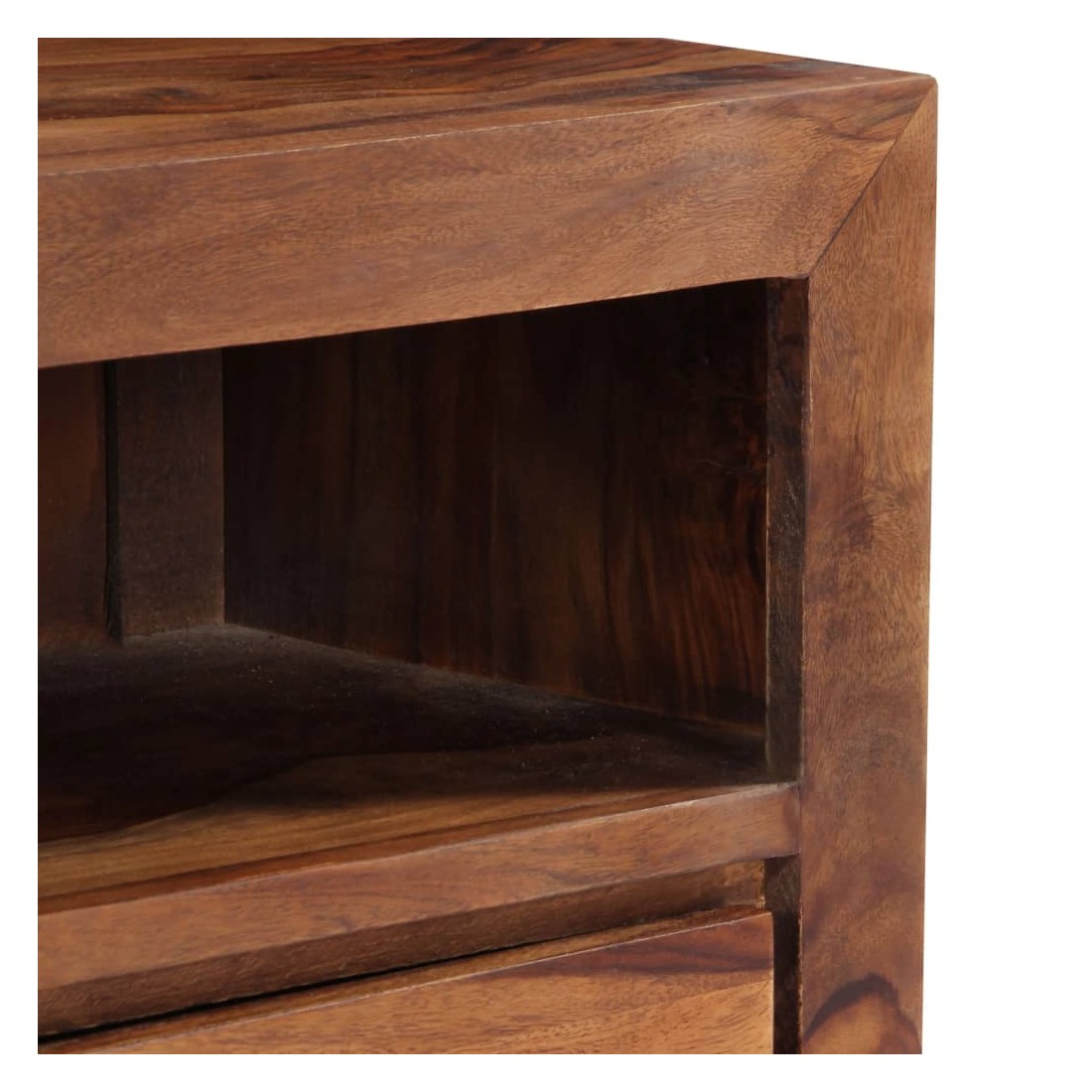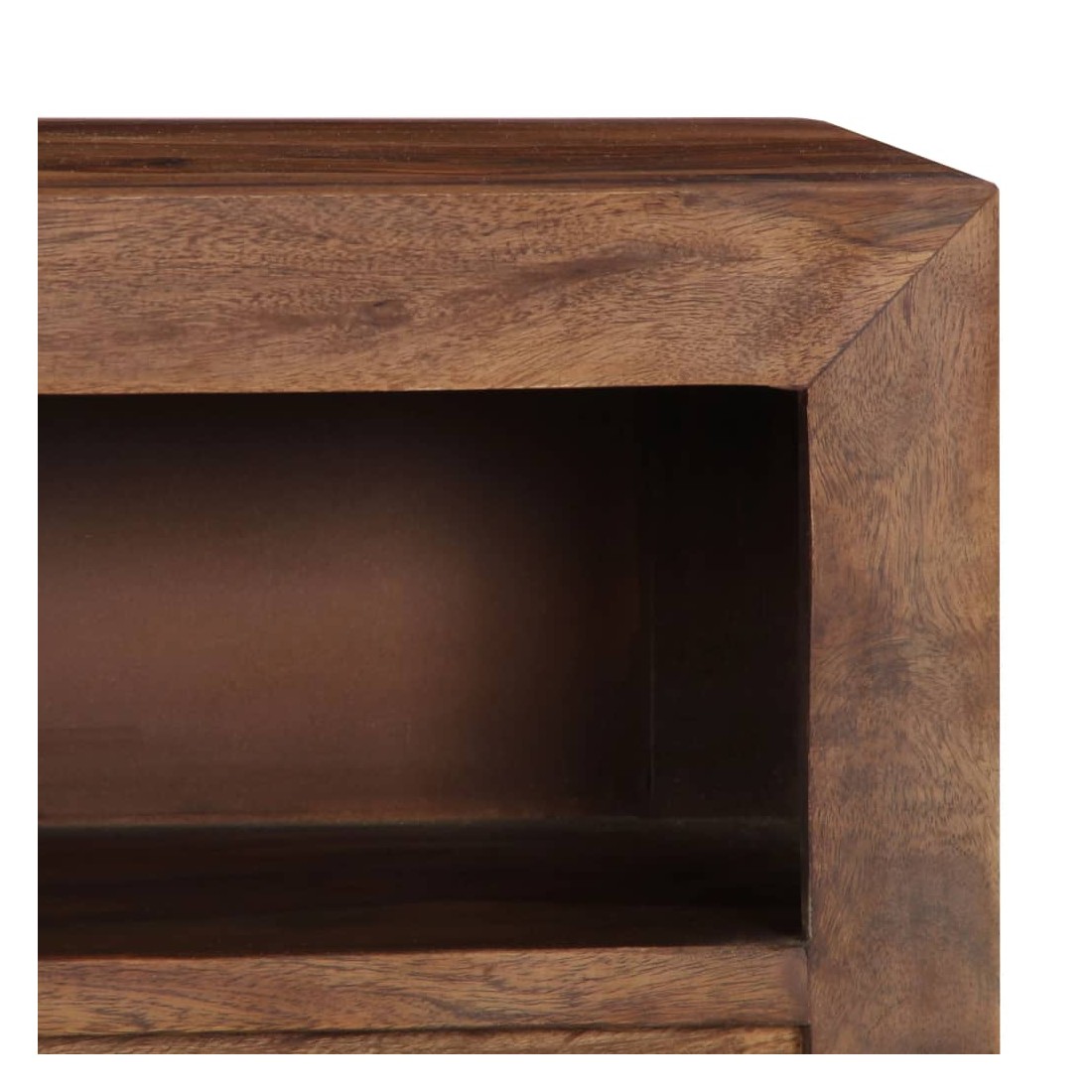 Ce meuble de télévision dégage un charme rustique. Il deviendra une pièce de résistance de votre intérieur. Le buffet est fait de bois solide, également appelé palissandre ou bois de rose, est un bois dur tropical qui est célèbre pour ses grains naturels et sa texture lisse. De plus, il ne se déforme pas et ne se fend pas et présente une résistance naturelle à la pourriture. En conséquence, ce buffet au design magnifique est extrêmement stable, durable et captivante. Ce meuble stéréo est entièrement fabriqué à la main et les grains de bois esthétiquement attrayants rendent chaque meuble distinctif et légèrement différent l'un de l'autre. Cette armoire HiFi comprend 3 tiroirs et 1 compartiment, offrant amplement d'espace pour ranger vos appareils multimédia, vos livres, ainsi que divers autres articles. Remarque importante : les grains de bois varient d'une pièce à l'autre, rendant chaque pièce unique. La livraison est aléatoire, ce qui garantit l'exclusivité et l'individualité de votre produit.