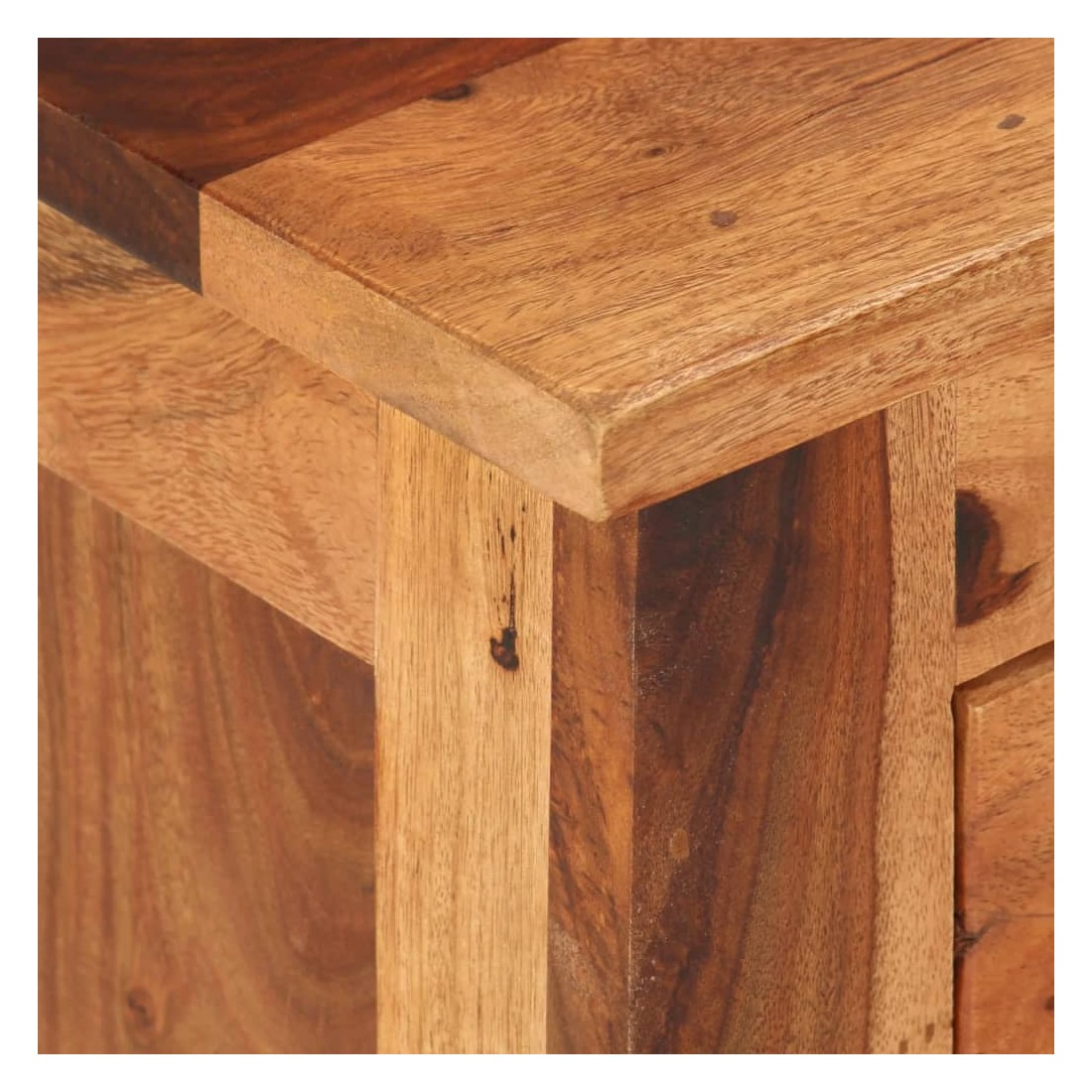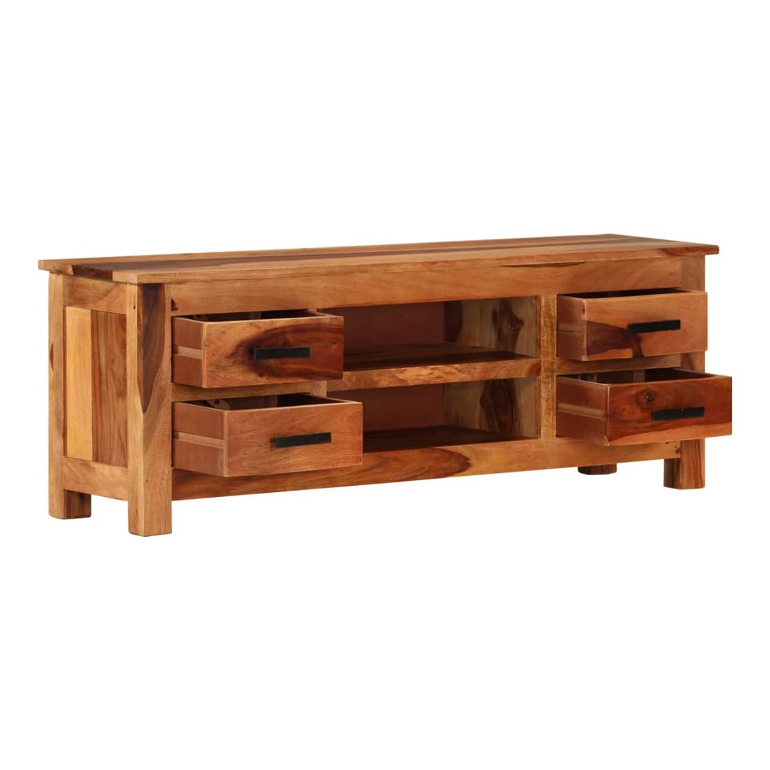 Ce meuble de télévision dégage un charme rustique. Il deviendra une pièce de résistance de votre intérieur. Le buffet est fabriqué en bois massif, un matériau durable et esthétique. De plus, il ne se déforme pas, ne se fend pas et présente une résistance naturelle à la pourriture. C'est pourquoi ce buffet bas superbement conçu est extrêmement stable, durable et captivant. La perfection de la fabrication garantit que chaque étape du processus est réalisée avec le plus grand soin, que ce soit le polissage ou le vernissage. Le meuble stéréo est entièrement fabriqué à la main et les grains de bois esthétiques rendent chaque pièce unique et légèrement différente l'une de l'autre. Cette armoire HiFi dispose de 4 tiroirs et de 2 compartiments, offrant suffisamment d'espace pour ranger vos appareils multimédia, livres, ainsi que divers autres articles. Cet article est déjà assemblé ; aucun assemblage n'est requis. Remarque importante : les grains de bois varient d'une pièce à l'autre, rendant chaque pièce unique. La livraison est aléatoire, ce qui garantit l'exclusivité et l'individualité de votre produit.