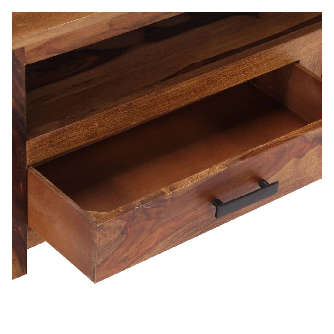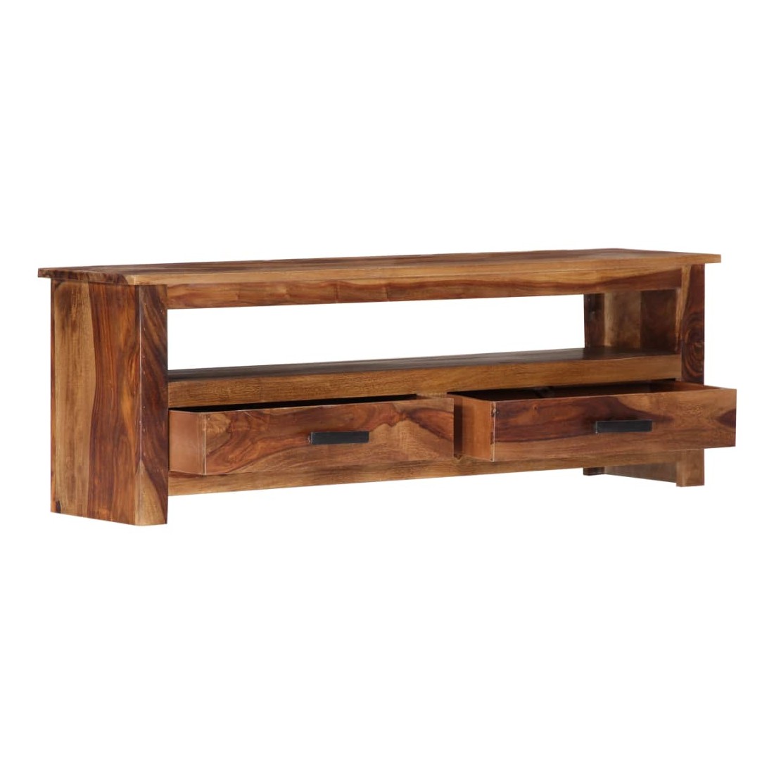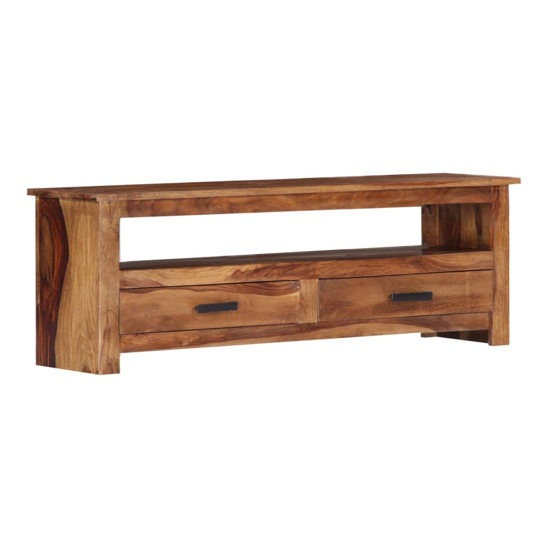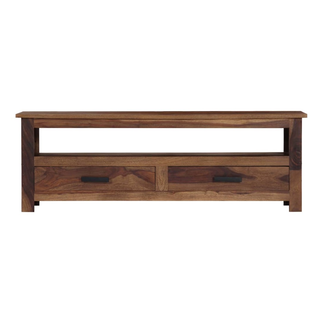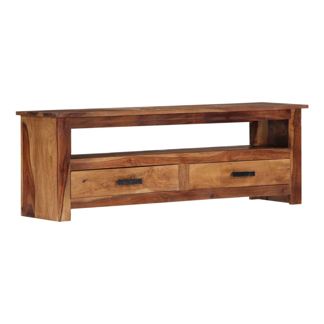 Ce meuble de télévision dégage un charme rustique. Il deviendra une pièce de résistance de votre intérieur. Le buffet est fabriqué en bois massif, un matériau durable et esthétique. De plus, il ne se déforme pas, ne se fend pas et présente une résistance naturelle à la pourriture. C'est pourquoi ce buffet bas superbement conçu est extrêmement stable, durable et captivant. La perfection de la fabrication garantit que chaque étape du processus est réalisée avec le plus grand soin, que ce soit le polissage ou le vernissage. Le meuble stéréo est entièrement fabriqué à la main et les grains de bois esthétiques rendent chaque pièce unique et légèrement différente l'une de l'autre. Cette armoire HiFi dispose de 2 tiroirs et d'un compartiment, offrant suffisamment d'espace pour ranger vos appa