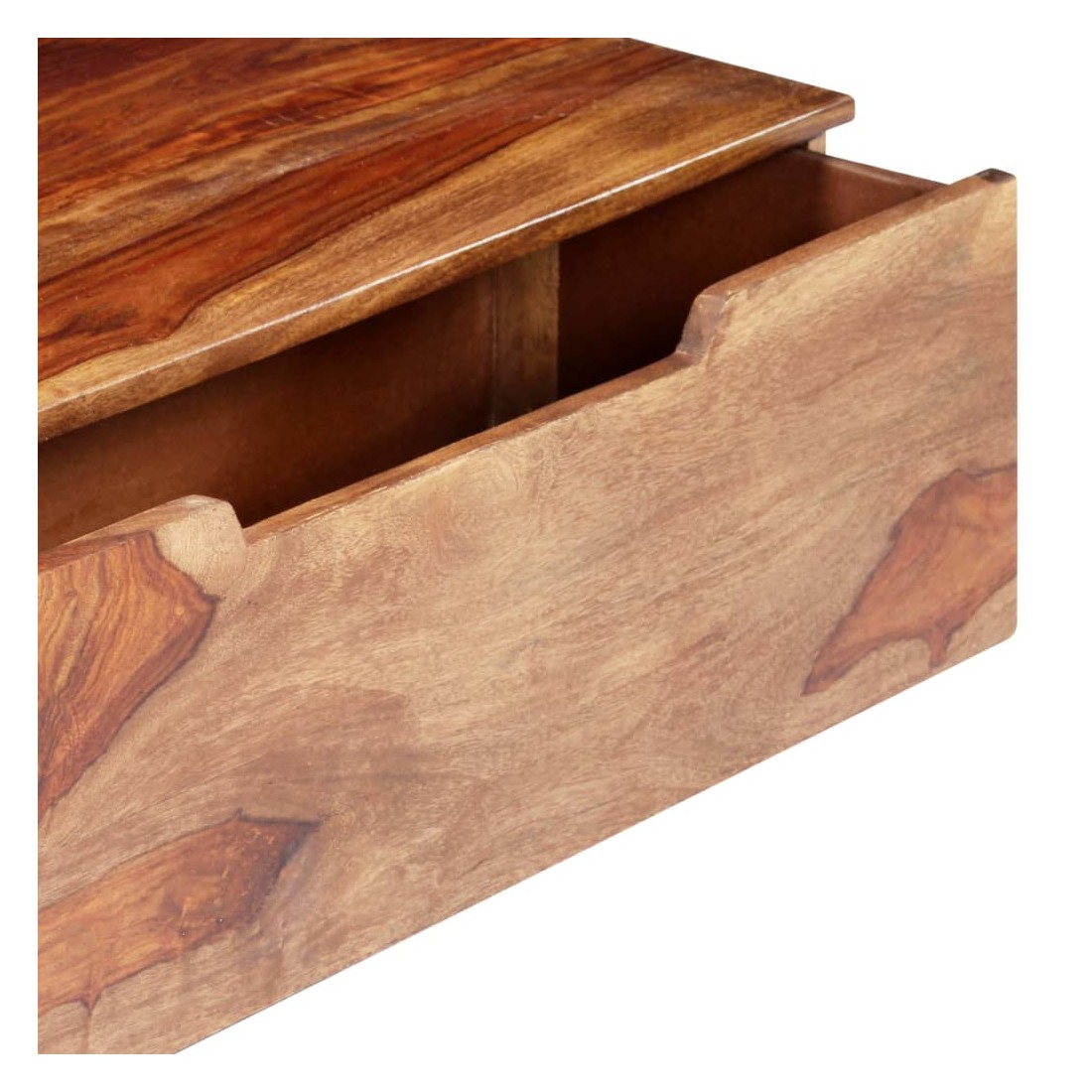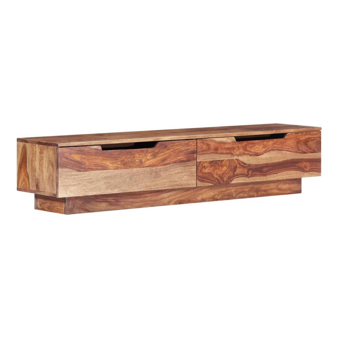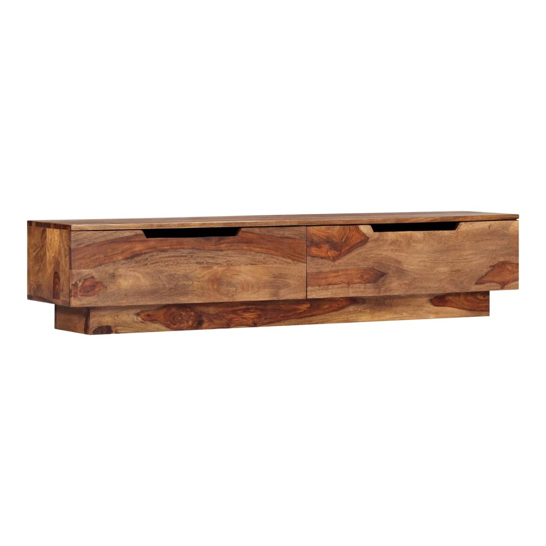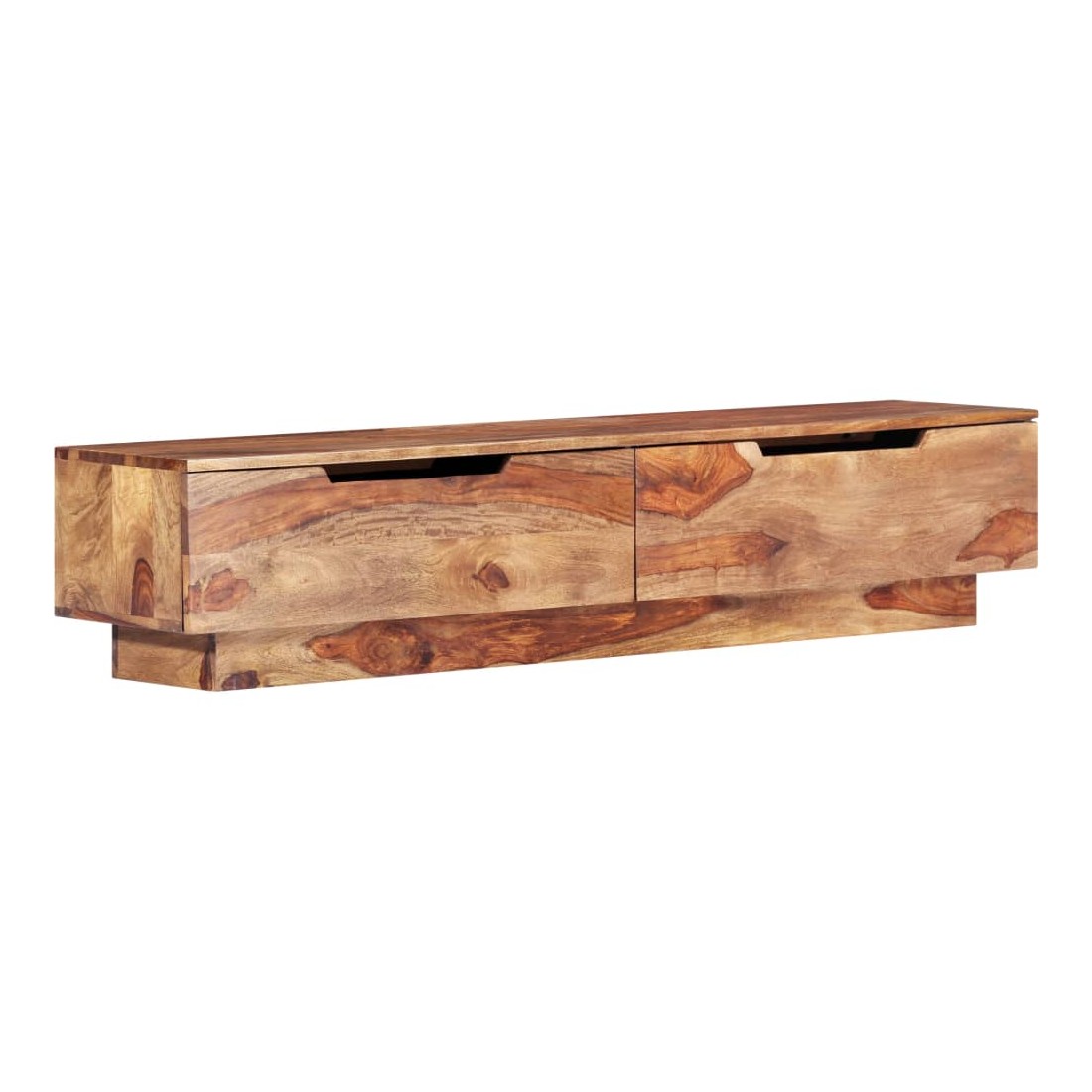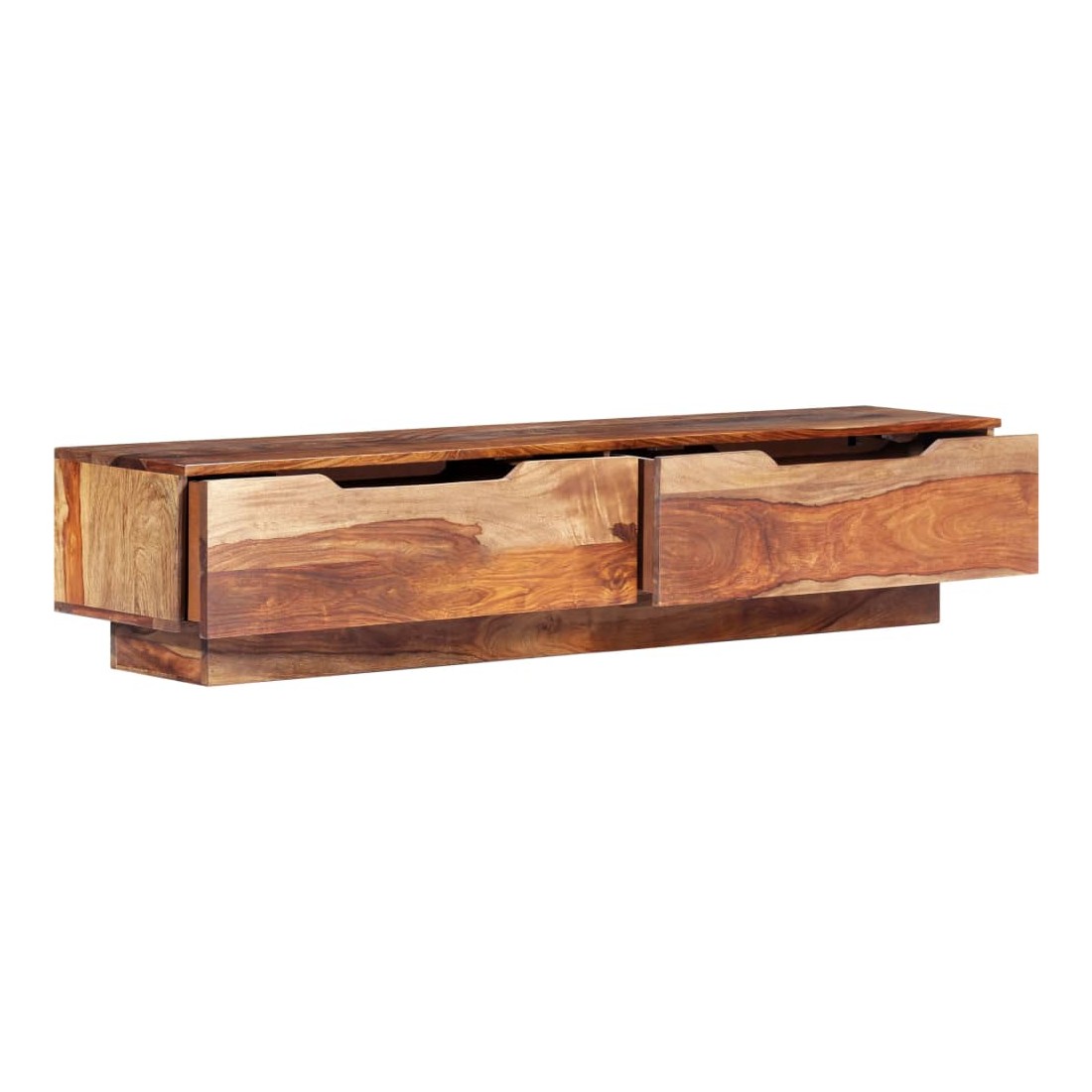 Avec un design rustique et tendance, ce meuble TV en bois solide ajoutera une touche décorative et pratique à votre décoration. Le buffet est fabriqué en bois massif, un matériau durable et esthétique. De plus, il ne se déforme pas et ne se fend pas et présente une résistance naturelle à la pourriture. En conséquence, ce buffet est extrêmement stable, durable et accrocheur. Le savoir-faire exquis et les grains de bois esthétiquement attrayants rendent chaque meuble unique et légèrement différent l'un de l'autre. De plus, conçu avec 2 tiroirs, le meuble TV offre suffisamment d'espace de rangement pour garder vos magazines, livres, DVD et appareils multimédia bien organisés et à portée de main. Il est facile à assembler. Remarque importante : les couleurs et les grains peuvent varier d'une pièce à l'autre, ce qui rend chacun de nos meubles TV unique. La livraison est aléatoire, ce qui garantit l'exclusivité et l'individualité de votre produit.