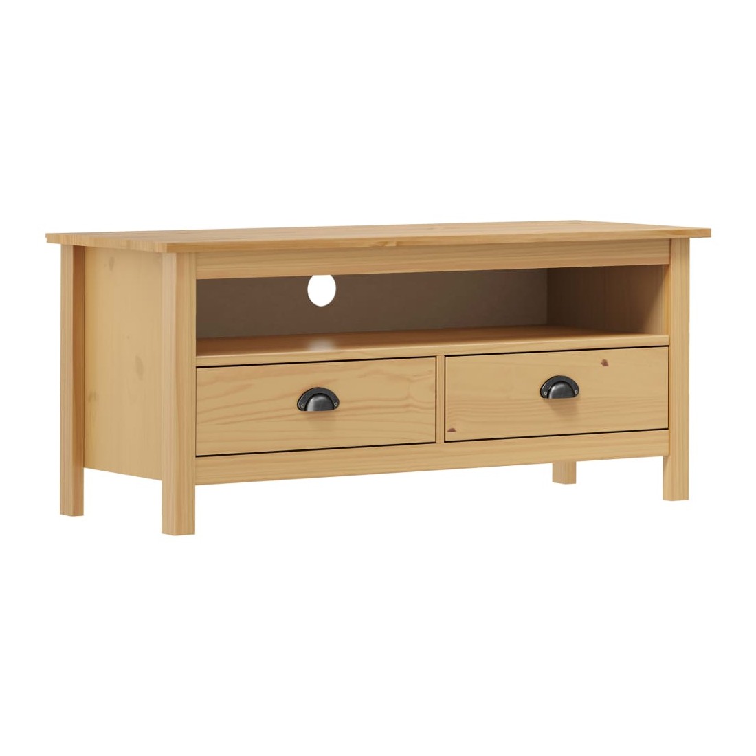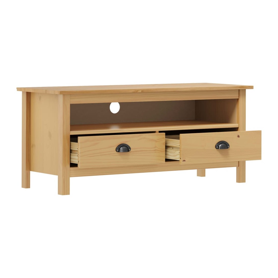 Si vous recherchez à ajouter une touche de charme rustique à votre décoration intérieure, notre meuble TV en bois massif sera pour vous. Ce buffet est fait de bois de pin massif, ce qui le rend stable et robuste. L’armoire stéréo est équipée de 2 tiroirs avec des poignées de tasse et de 1 compartiment, offrant un grand espace de rangement pour afficher ou garder tous les articles que vous souhaitez bien organisé. Remarque importante : les couleurs varient d'une pièce à l'autre, ce qui rend chacun de nos supports TV en bois unique.