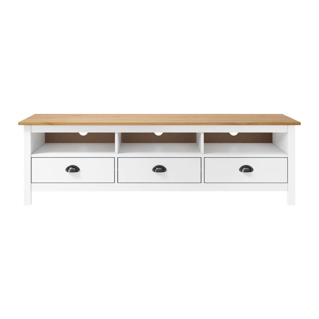 Ce superbe meuble TV au design rétro deviendra le point de mire de votre salon ! Fabriqué en bois de pin massif, ce meuble TV est robuste et durable. Son design élégant fera de la planche basse un élément décoratif convivial et extraordinairement décoratif pour votre maison. Le meuble stéréo a 3 étagères et 3 tiroirs, offrant un grand espace pour ranger toutes sortes d’objets plus petits comme des clés, des bloc-notes, des stylos, ainsi que d’autres bibelots et les tenir organisés et à portée de main. En outre, le grand dessus est idéal pour placer votre téléviseur, votre routeur, vos appareils multimédia ou pour afficher des objets décoratifs.