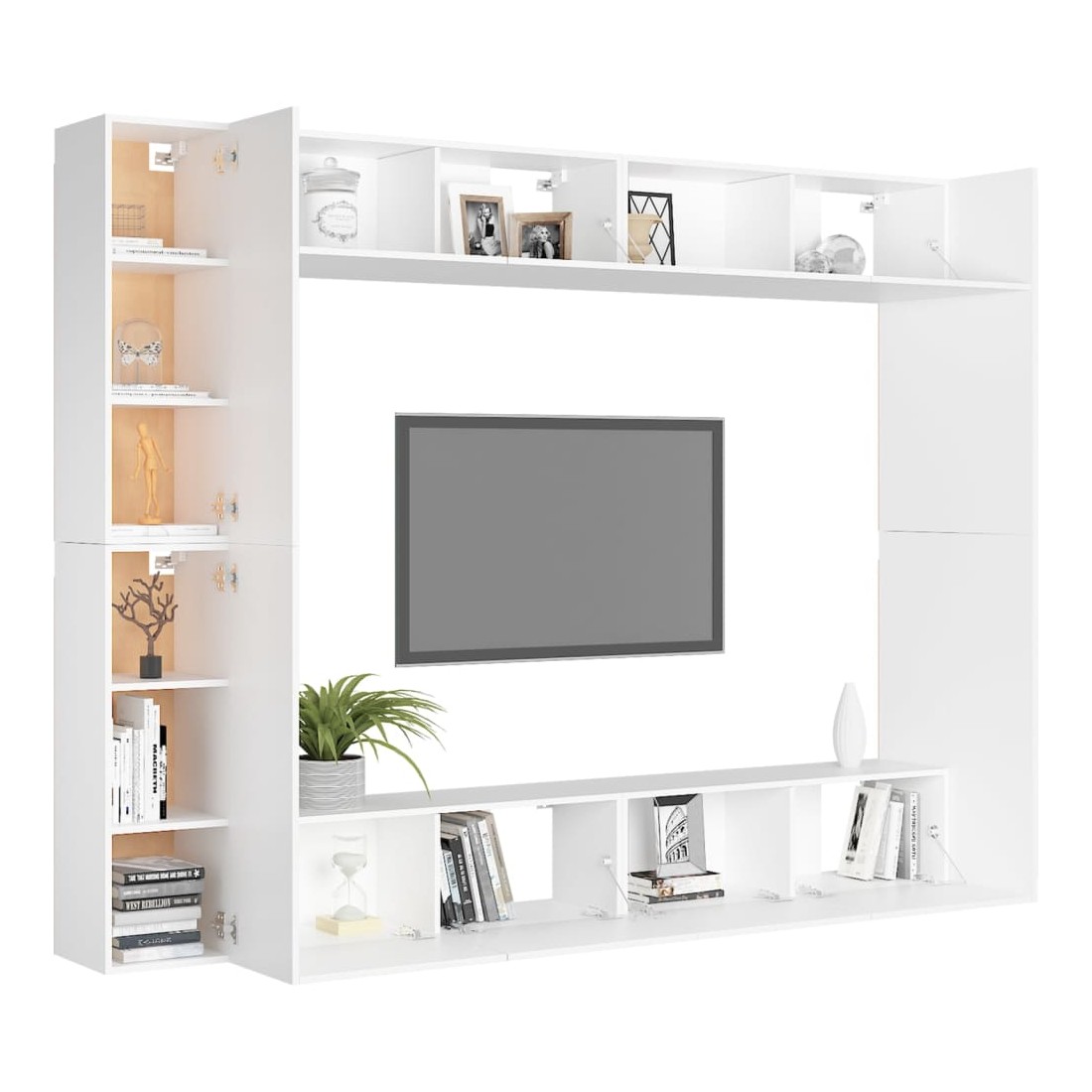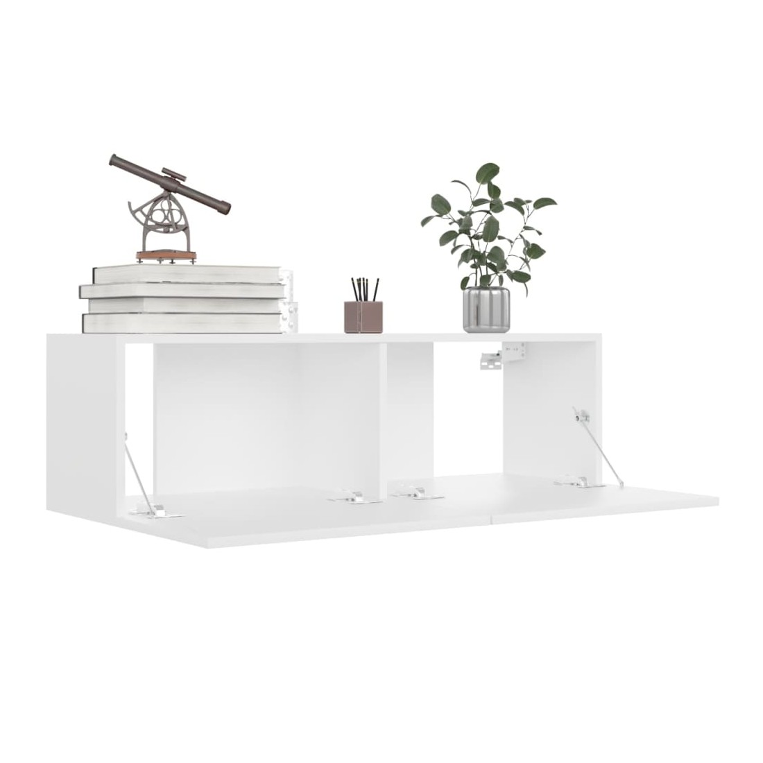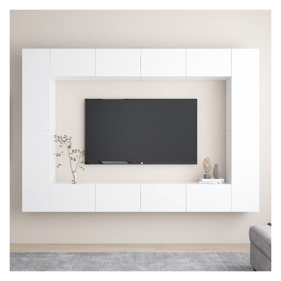Cet ensemble de meuble TV robuste est destiné à être le point de mire de votre pièce avec un design à la fois tendance et pratique. Le meuble TV est fixé au mur, ce qui en fait un supplément intemporel à votre maison. Il offre de nombreux compartiments de rangement, ce qui en fait un endroit idéal pour stocker tous vos livres, magazines, DVD ou autres objets. Le meuble stéréo est facile à entretenir et à nettoyer avec un chiffon humide.