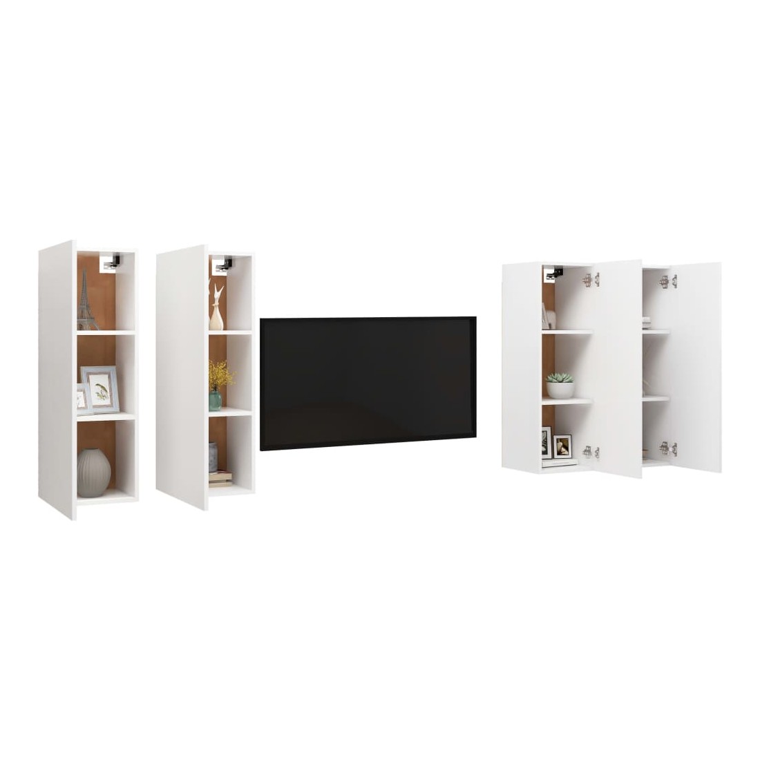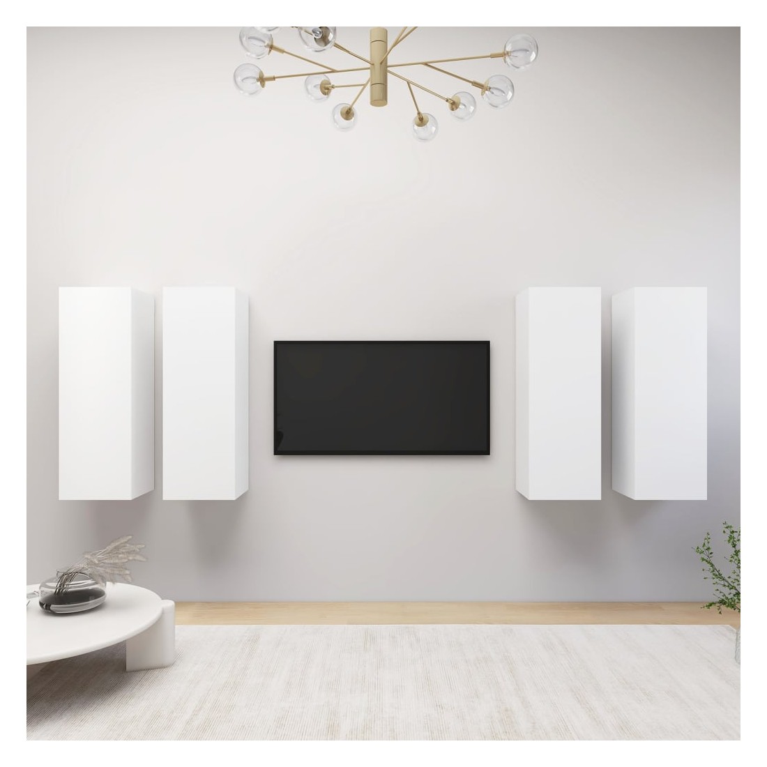 Cet ensemble de meuble TV suspendu est destiné à être le point de mire de votre salon avec un design à la fois tendance et pratique. Ces armoires TV murales sont en bois d’ingénierie, ce qui les rend robustes et stables. Chaque armoire dispose de 2 étagères, ce qui en fait un endroit idéal pour ranger tous vos livres, magazines, DVD ou autres objets. Ces armoires murales sont également faciles à nettoyer avec un chiffon humide.