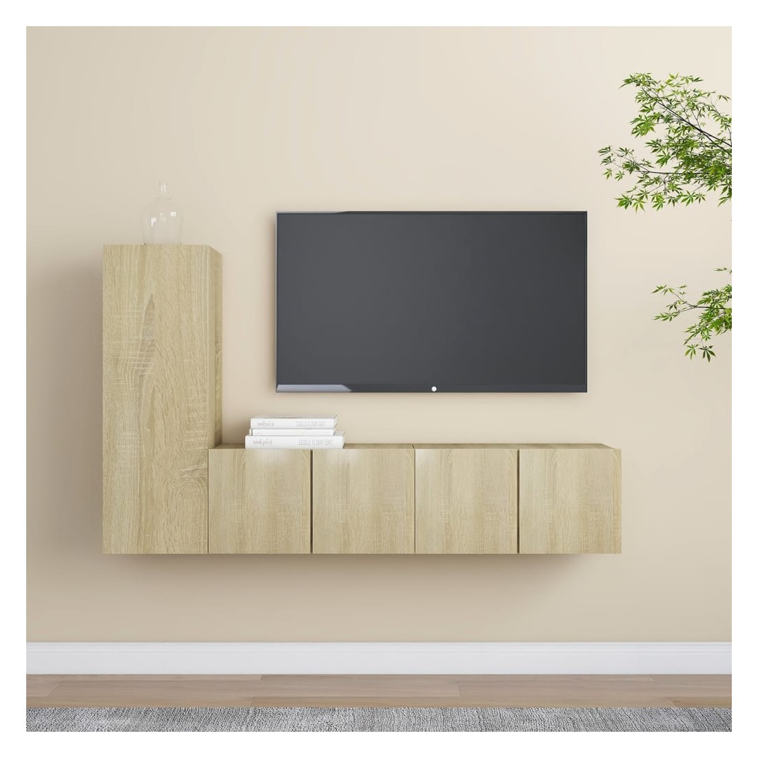 Équipé d'un grand espace de rangement pour organiser divers articles, cet ensemble de meuble TV suspendu sera certainement un supplément pratique et accrocheur dans votre maison. Le meuble TV est fixé au mur, ce qui en fait un supplément intemporel à votre maison. Cet ensemble d’armoire HiFi est idéal pour afficher ou garder bien organisés ou à portée de main tous les articles préférés. De plus, l’ensemble d’armoire stéréo est facile à nettoyer avec un chiffon humide.