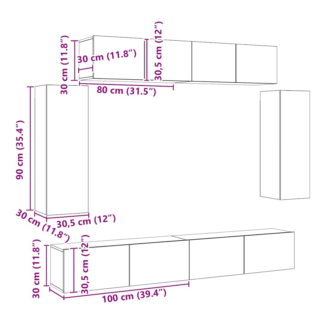- 2 x meuble TV : 30,5 x 30 x 90 cm (l x P x H)