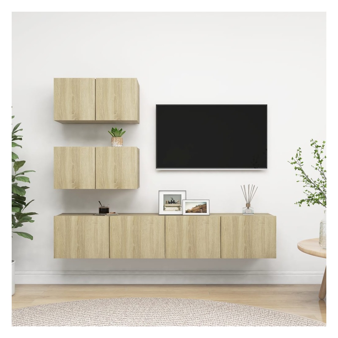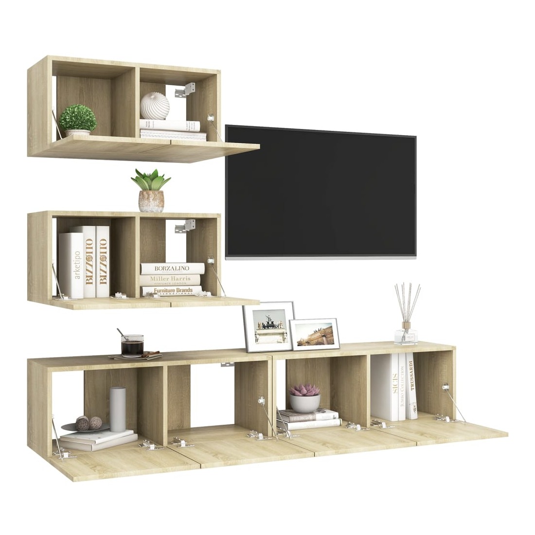 Ce meuble TV, doté d'un design moderne et d'un grand espace de rangement, devient un point de mire de votre salon. Cet ensemble de meuble TV suspendu est fabriqué en bois d'ingénierie, ce qui le rend robuste et durable. L'ensemble est fixé au mur, ce qui en fait un supplément intemporel à votre maison. L’ensemble dispose de plusieurs compartiments qui en font un endroit idéal pour stocker tous vos magazines, DVD ou autres articles. Cet ensemble de meuble Hifi est facile à nettoyer avec un chiffon humide.