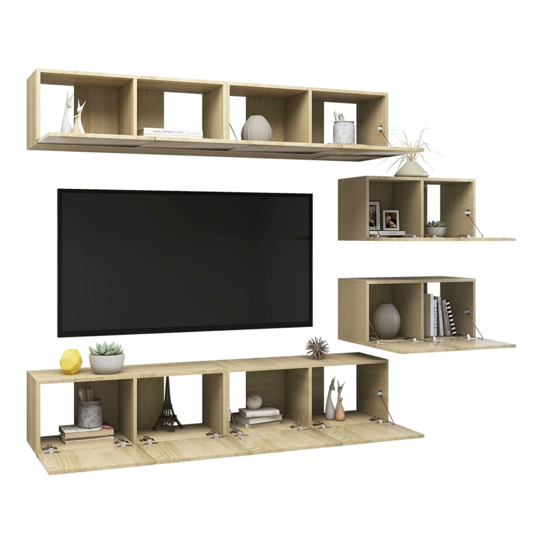 Ce meuble TV, doté d'un design moderne et d'un grand espace de rangement, devient un point de mire de votre salon. Cet ensemble de meuble TV suspendu est fabriqué en bois d'ingénierie, ce qui le rend robuste et durable. L'ensemble est fixé au mur, ce qui en fait un supplément intemporel à votre maison. L’ensemble dispose de plusieurs compartiments qui en font un endroit idéal pour stocker tous vos magazines, DVD ou autres articles. Cet ensemble de meuble Hifi est facile à nettoyer avec un chiffon humide.