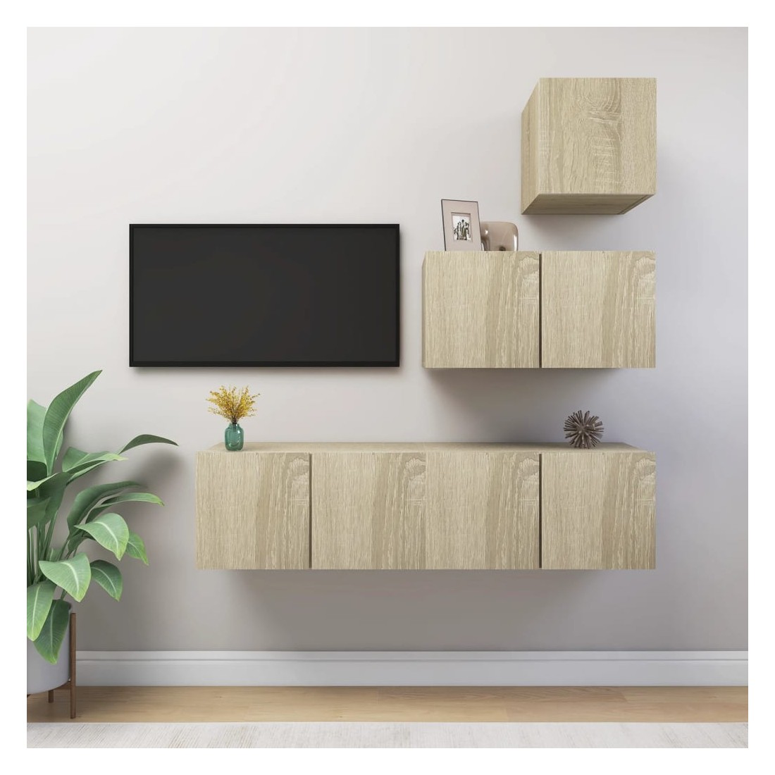 Ce meuble TV, doté d'un design moderne et d'un grand espace de rangement, devient un point de mire de votre salon. Cet ensemble de meuble TV suspendu est fabriqué en bois d'ingénierie, ce qui le rend robuste et durable. L'ensemble est fixé au mur, ce qui en fait un supplément intemporel à votre maison. L’ensemble dispose de plusieurs compartiments qui en font un endroit idéal pour stocker tous vos magazines, DVD ou autres articles. Cet ensemble de meuble Hifi est facile à nettoyer avec un chiffon humide.