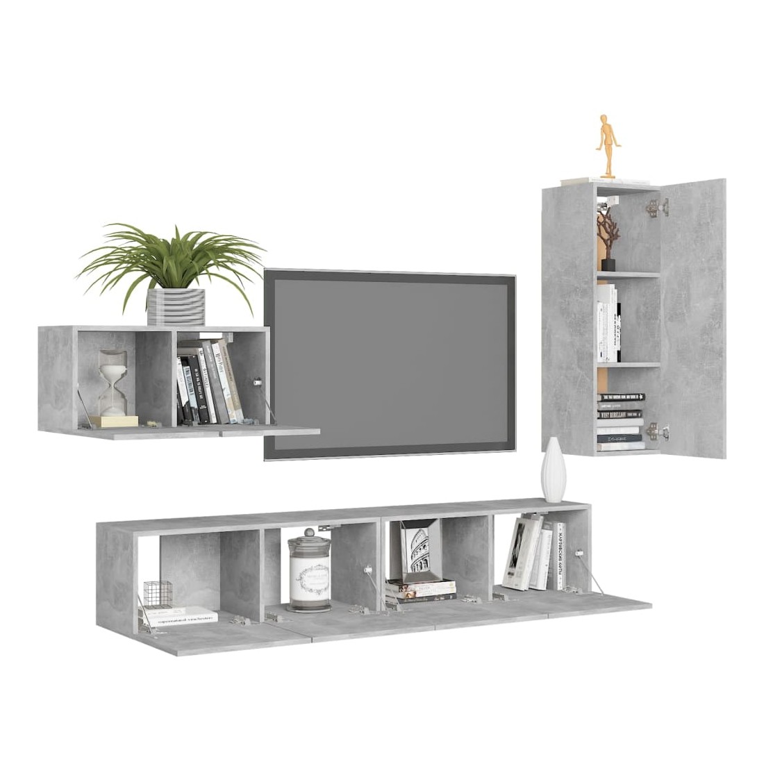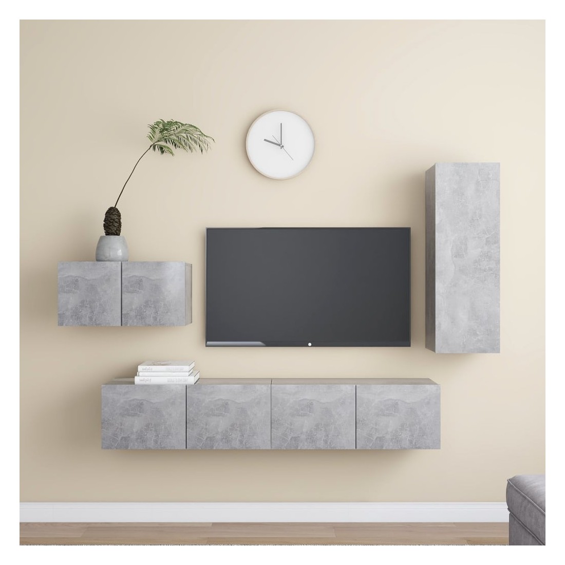 Équipé d'un grand espace de rangement pour organiser divers articles, cet ensemble de meuble TV suspendu sera certainement un supplément pratique et accrocheur dans votre maison. Le meuble TV est fixé au mur, ce qui en fait un supplément intemporel à votre maison. Cet ensemble d’armoire HiFi est idéal pour afficher ou garder bien organisés ou à portée de main tous les articles préférés. De plus, l’ensemble d’armoire stéréo est facile à nettoyer avec un chiffon humide.