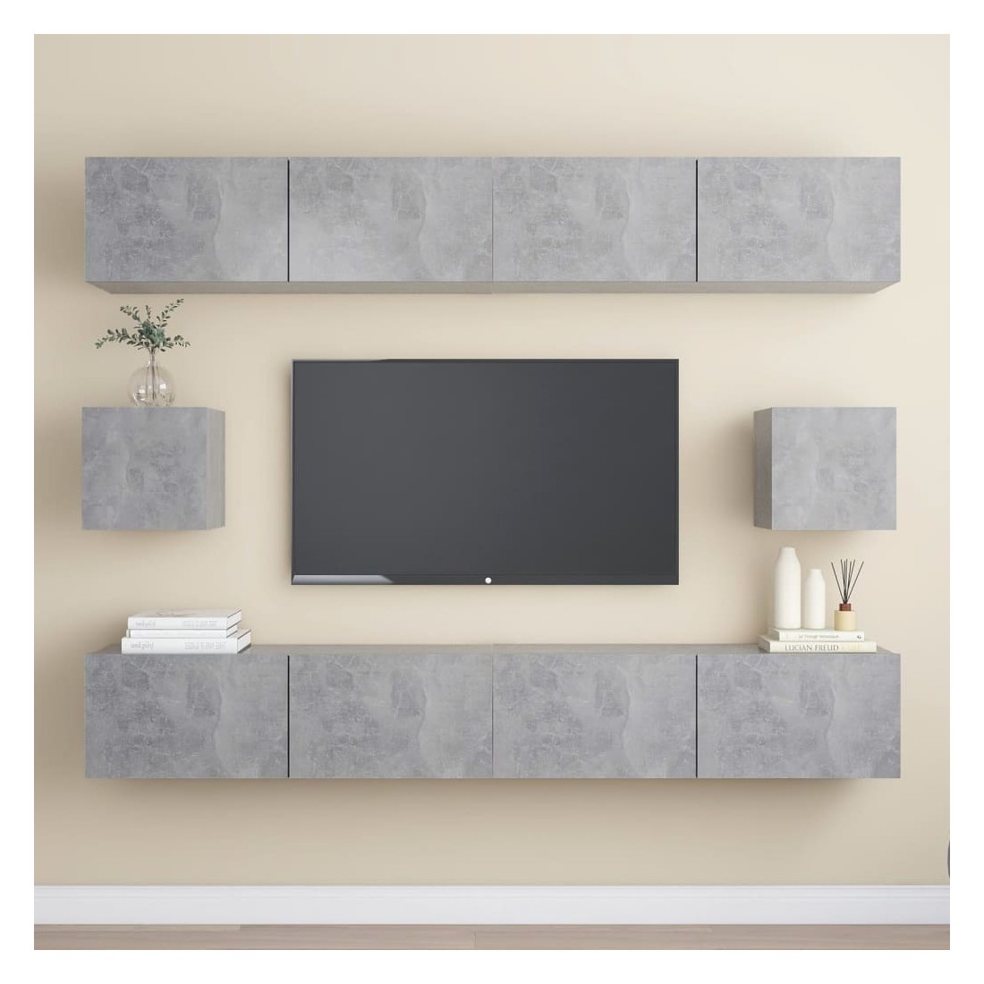 Équipé d'un grand espace de rangement pour organiser divers articles, cet ensemble de meuble TV suspendu sera certainement un supplément pratique et accrocheur dans votre maison. Le meuble TV est fixé au mur, ce qui en fait un supplément intemporel à votre maison. Cet ensemble d’armoire HiFi est idéal pour afficher ou garder bien organisés ou à portée de main tous les articles préférés. De plus, l’ensemble d’armoire stéréo est facile à nettoyer avec un chiffon humide.