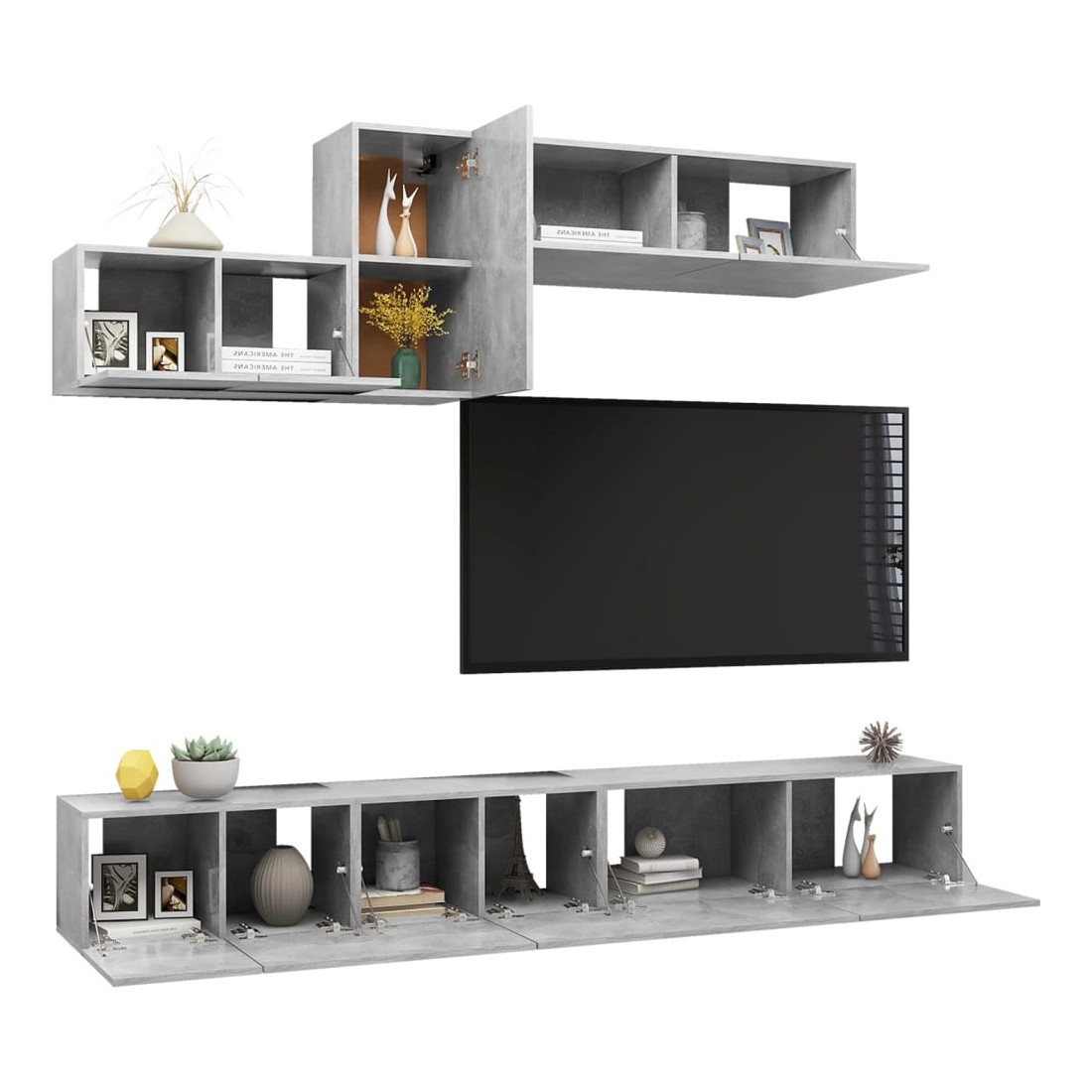 Ce meuble TV, doté d'un design moderne et d'un grand espace de rangement, devient un point de mire de votre salon. Cet ensemble de meuble TV suspendu est fabriqué en bois d'ingénierie, ce qui le rend robuste et durable. L'ensemble est fixé au mur, ce qui en fait un supplément intemporel à votre maison. L’ensemble dispose de plusieurs compartiments qui en font un endroit idéal pour stocker tous vos magazines, DVD ou autres articles. Cet ensemble de meuble Hifi est facile à nettoyer avec un chiffon humide.