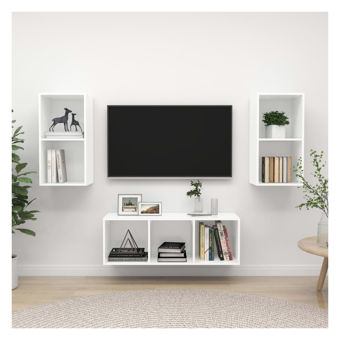 Équipé d'un grand espace de rangement pour organiser divers articles, cet ensemble de meuble TV suspendu sera certainement un supplément pratique et accrocheur dans votre maison. Le meuble TV est fixé au mur, ce qui en fait un supplément intemporel à votre maison. Cet ensemble d’armoire HiFi est idéal pour afficher ou garder bien organisés ou à portée de main tous les articles préférés. De plus, l’ensemble d’armoire stéréo est facile à nettoyer avec un chiffon humide.
