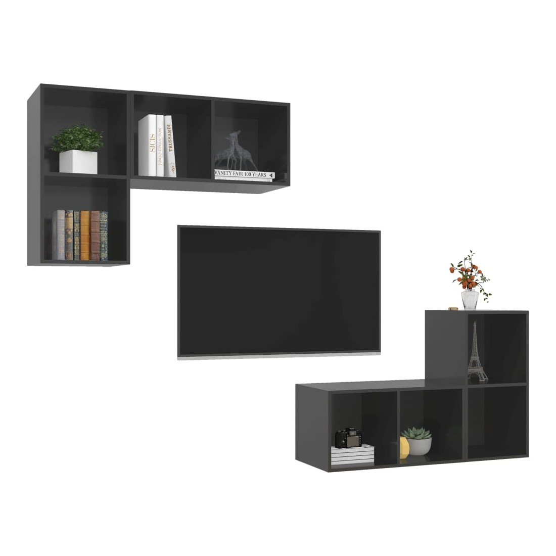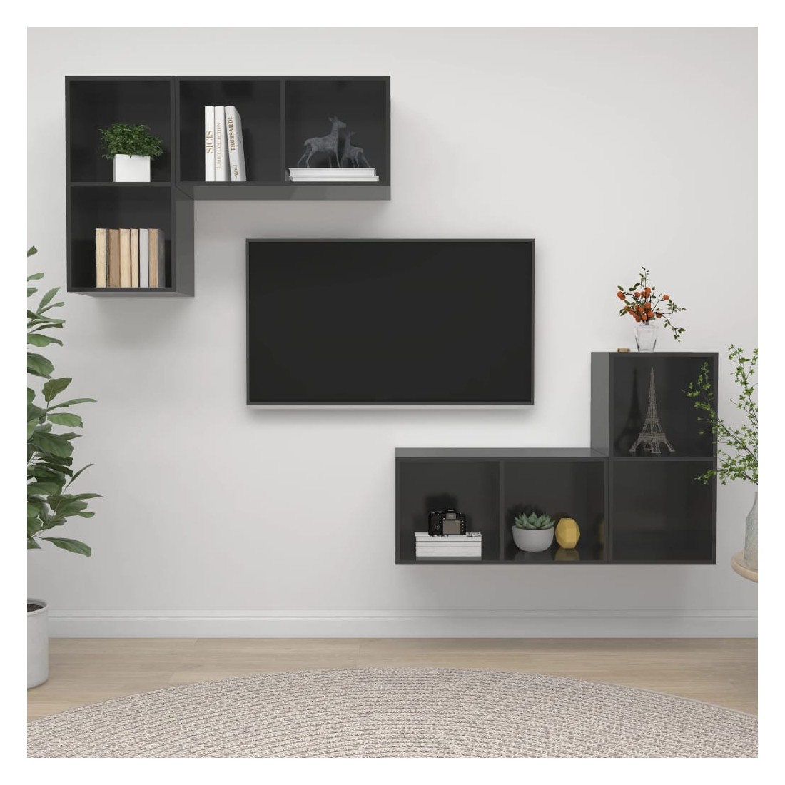 Équipé d'un grand espace de rangement pour organiser divers articles, cet ensemble de meuble TV mural sera certainement un supplément pratique et accrocheur dans votre maison. Ces meubles TV peuvent être accrochés au mur verticalement ou horizontalement selon vos préférences. Chaque armoire HiFi est équipée de 2 compartiments, vous pouvez donc afficher ou garder tous les objets que vous souhaitez bien organisés et à portée de main. De plus, les armoires stéréo sont faciles à nettoyer avec un chiffon humide.