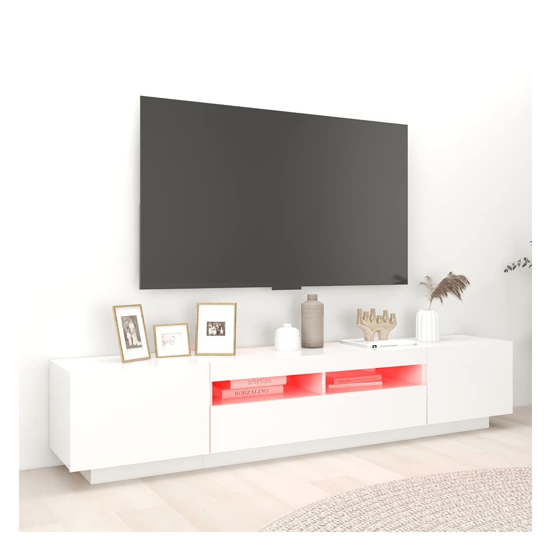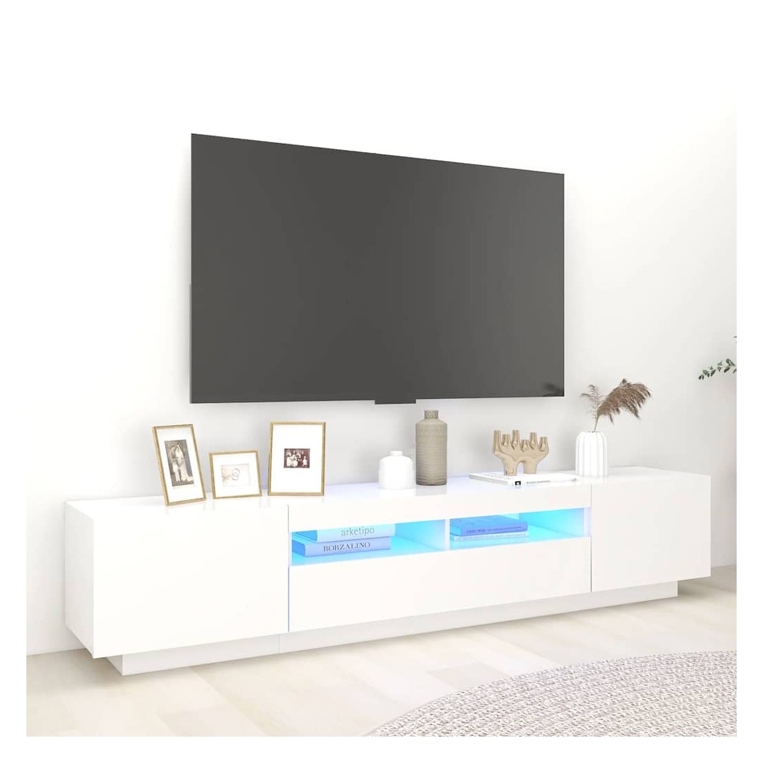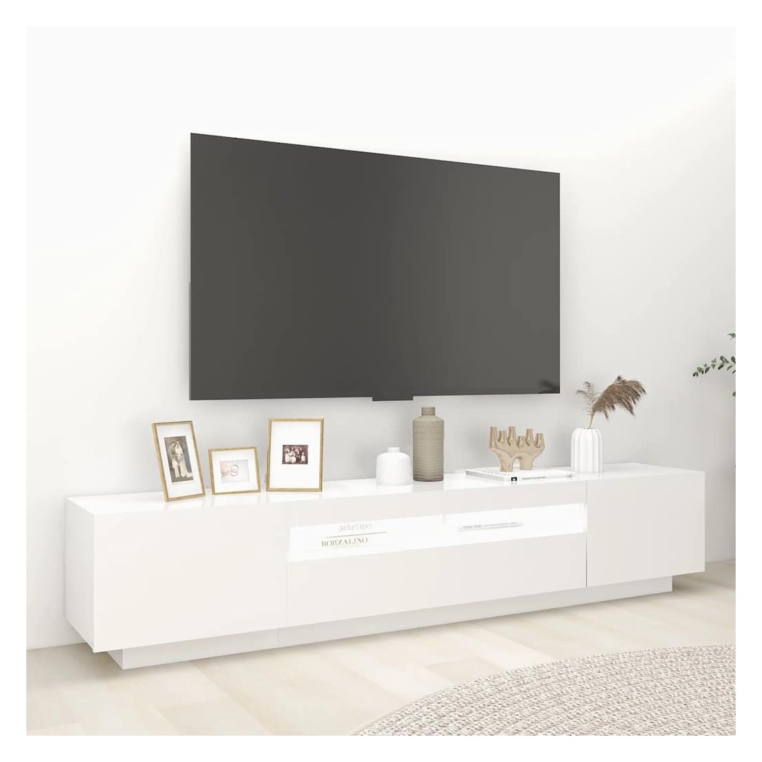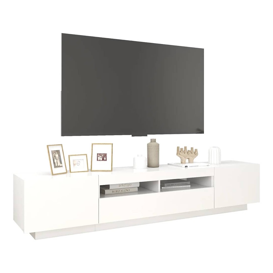 Meuble TV avec lumières LED Blanc 200x35x40 cm
