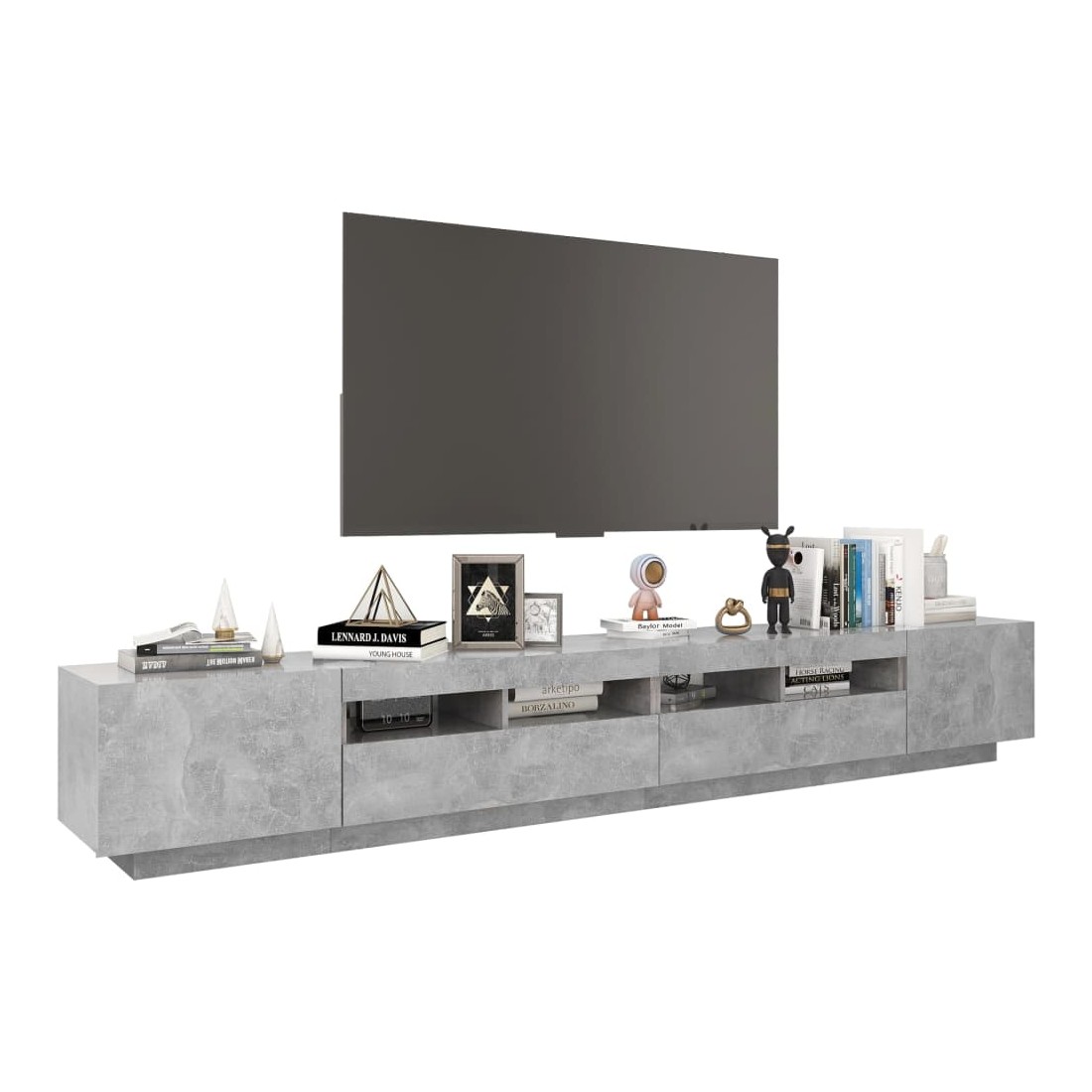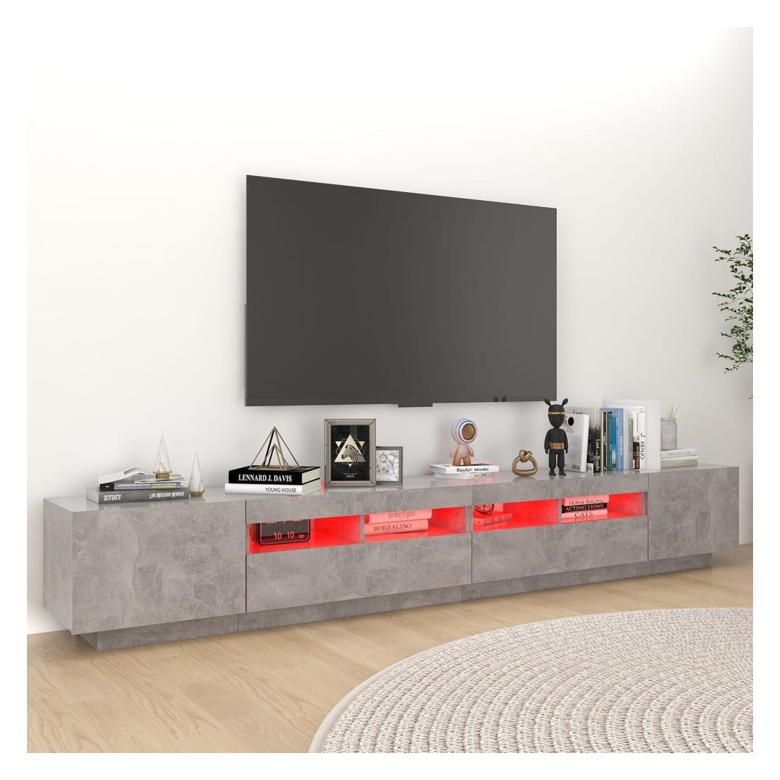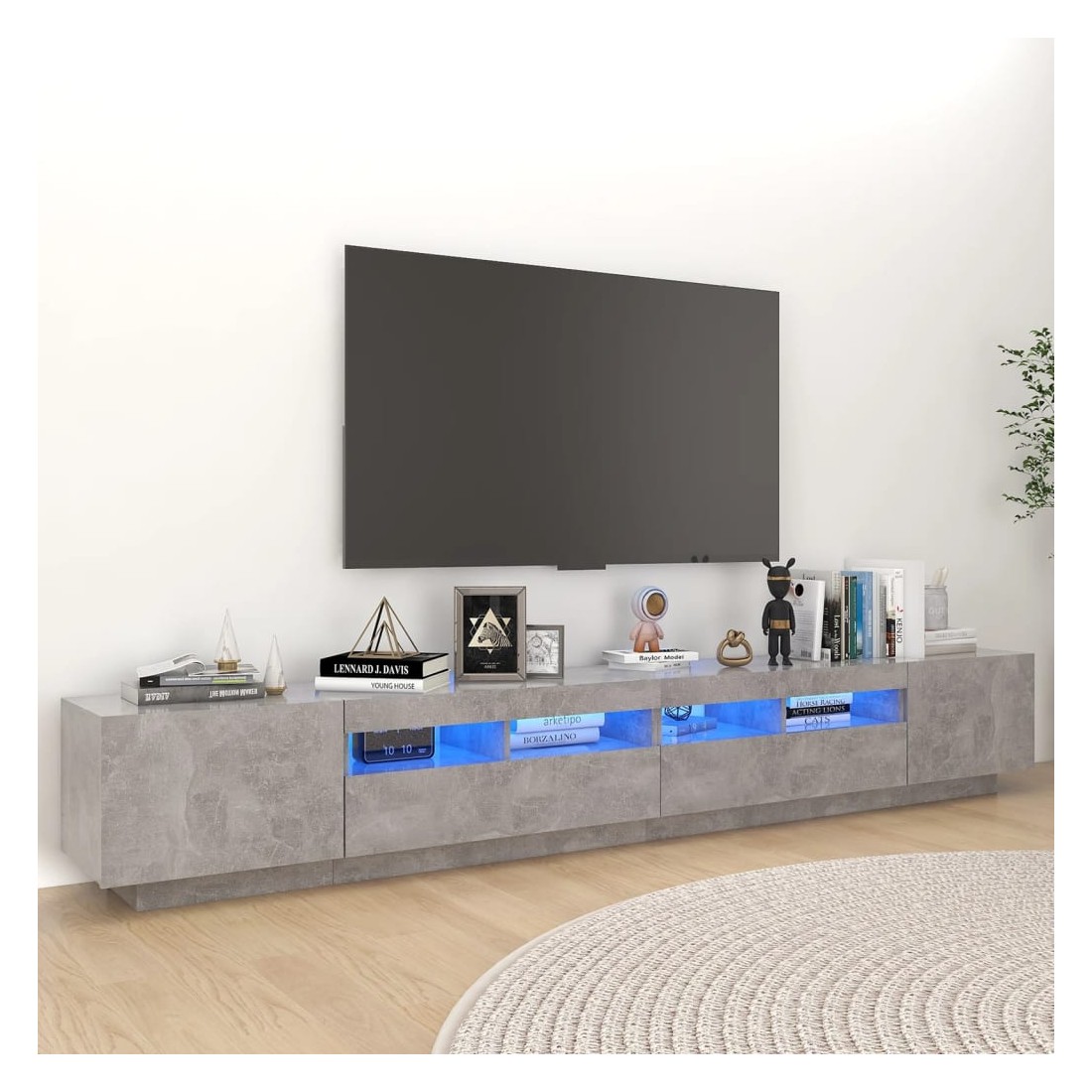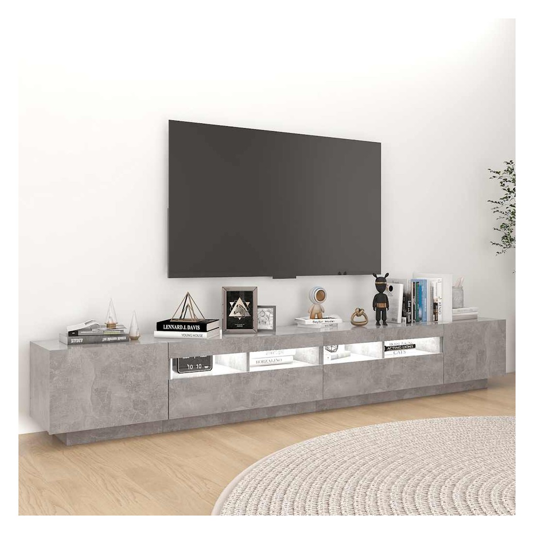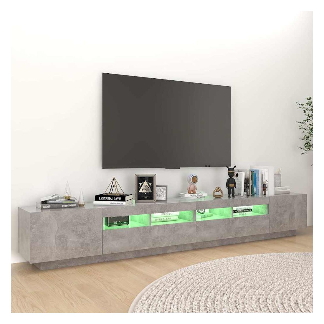 Avec un design à la fois tendance et pratique, ce meuble TV avec éclairage LED deviendra certainement un point central de votre pièce. La construction robuste de ce meuble HiFi le rend très durable. Il vous reste amplement d’espace pour garder votre lecteur DVD, votre console de jeu, votre appareil de streaming et vos supports multimédia bien organisés. Ce meuble TV dispose de lumières LED RVB, qui a différents menus pour changer la couleur des lumières et de laisser la couleur s’ajuster automatiquement. Les lumières LED soulignent l'aspect moderne et contribuent à l'impression de tendance. De plus, ce meuble TV est facile à nettoyer avec un chiffon humide. Remarque : ce meuble TV contient 2 meubles avec des lumières LED et 1 meuble qui peut être séparé en 2 petits meubles.Ce produit est doté d'un connecteur USB, mais la source d'alimentation certifiée de USB 5V n'est pas incluse.