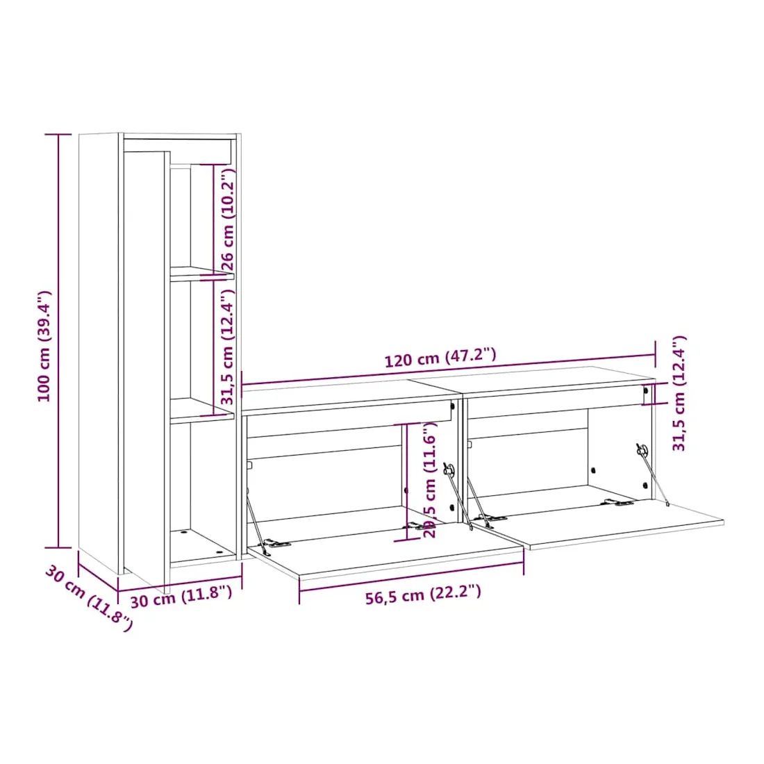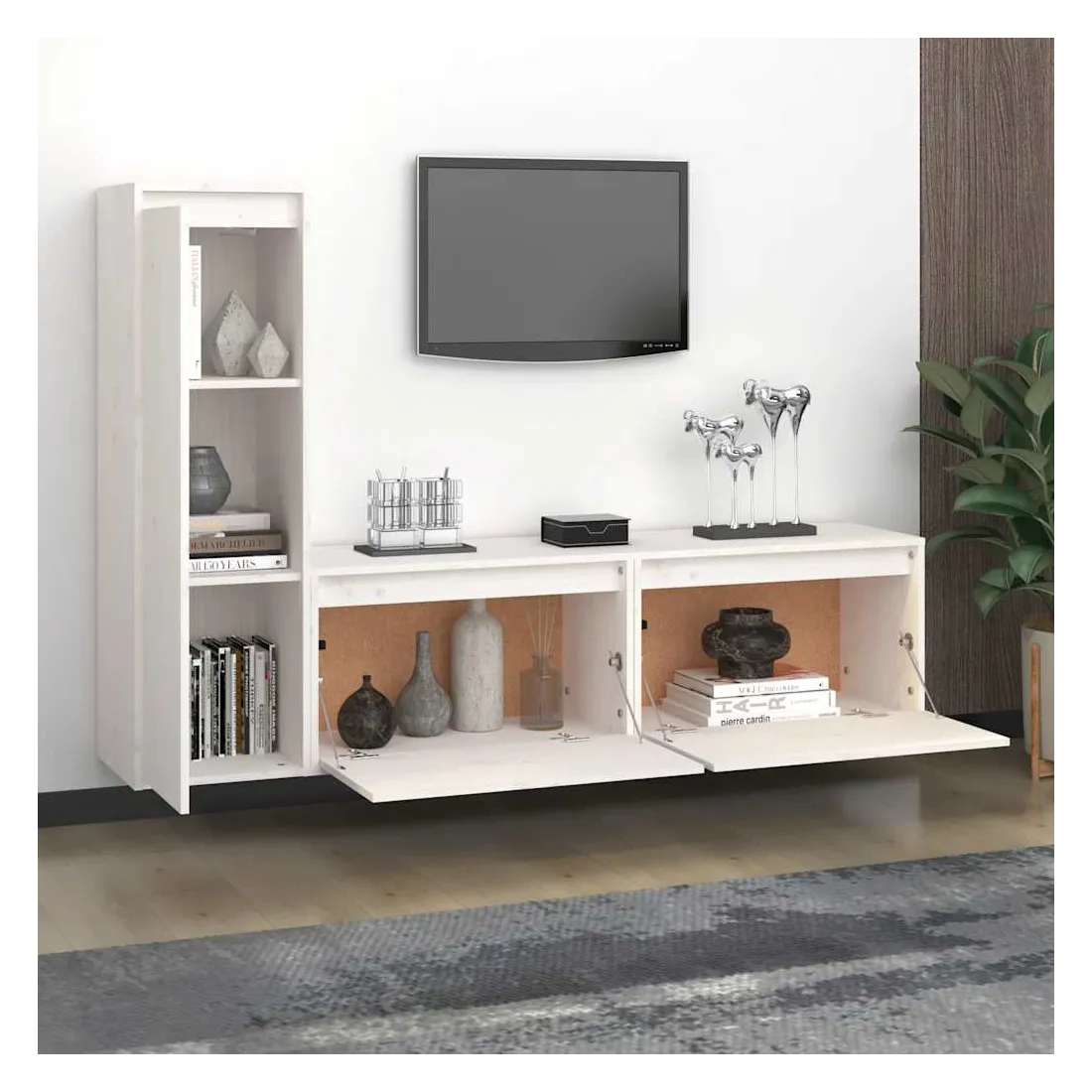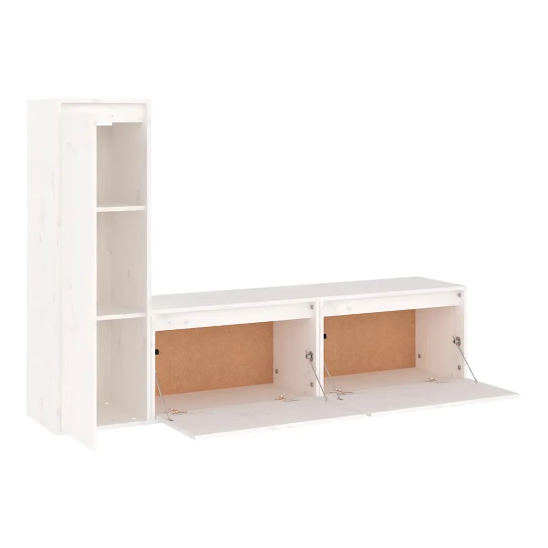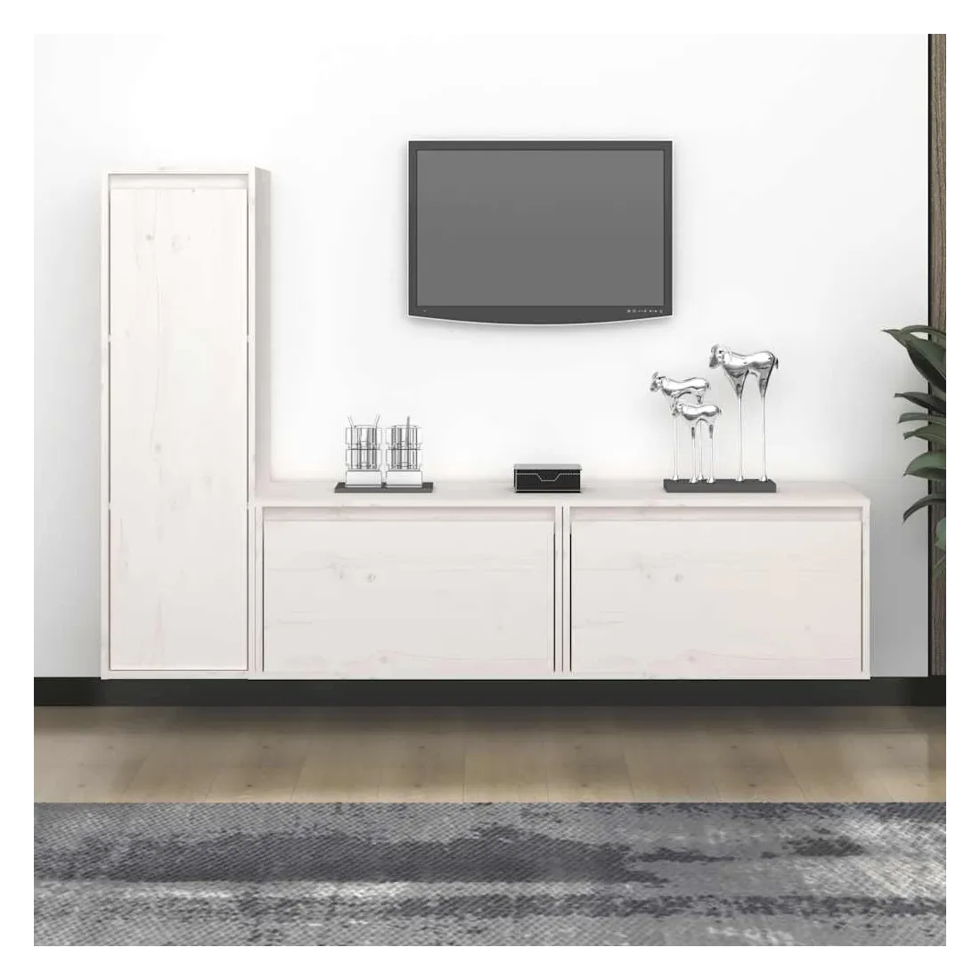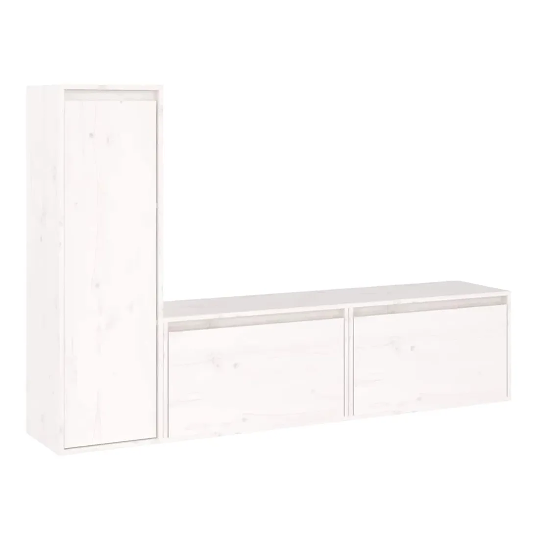 Meubles TV 3 pcs Blanc Bois massif de pin