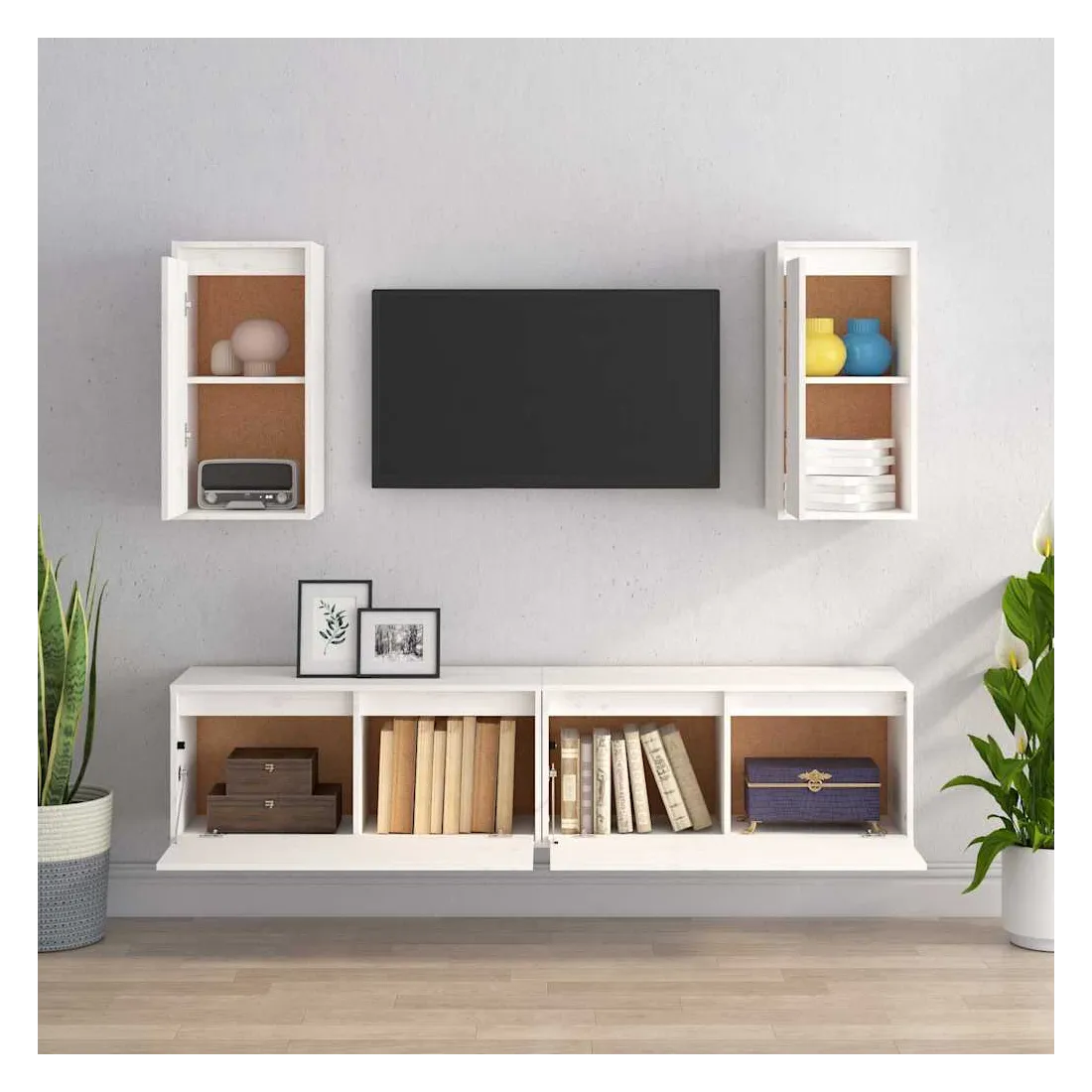 Ces meubles TV classiques sont conçus pour être le point de mire de votre pièce avec un design à la fois tendance et pratique. Ces armoires suspendues sont fabriquées en bois de pin massif, ce qui garantit leur solidité, durabilité et longévité. Les unités murales sont l'endroit idéal pour ranger des objets tels que des livres, des objets de collection, des bibelots, etc. Elles transforment un mur vide en une caractéristique de conception. De plus, les armoires flottantes sont faciles à nettoyer avec un chiffon humide. Veuillez noter : Les vis et les chevilles pour l'intérieur du mur ne sont pas incluses. Recherchez et utilisez des vis et des chevilles adaptées à vos murs. Si vous n'êtes pas sûr, demandez conseil à un professionnel. Lisez et suivez attentivement chaque étape de l'instruction.