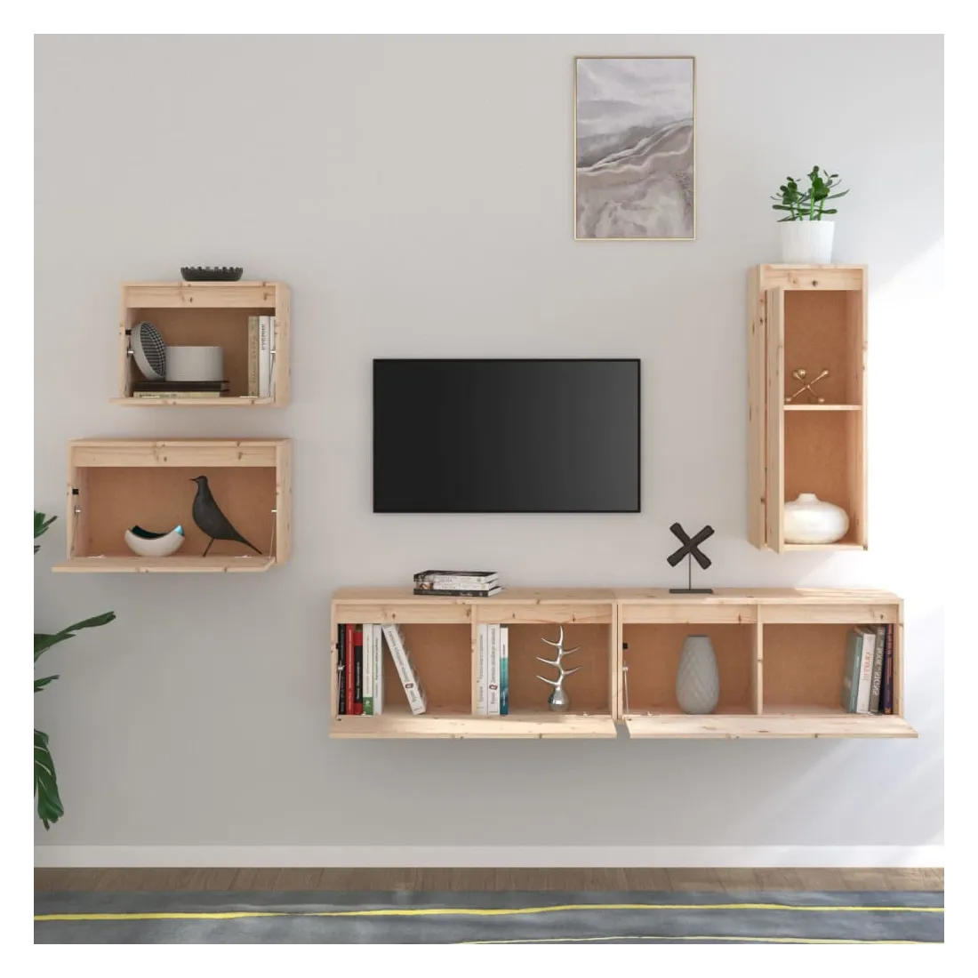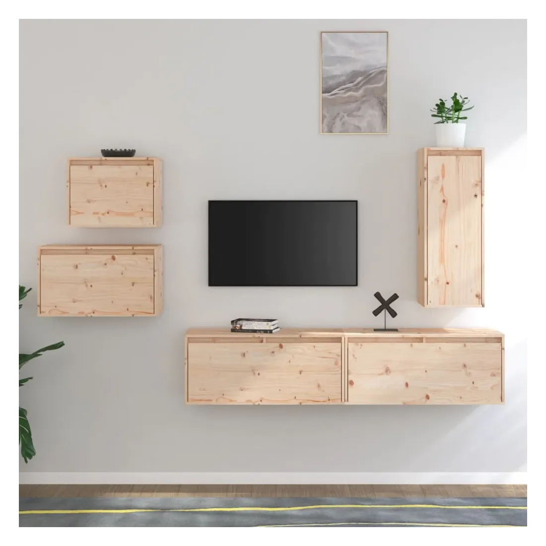 Ces meubles TV classiques sont conçus pour être le point de mire de votre pièce avec un design à la fois tendance et pratique. Ces armoires suspendues sont fabriquées en bois de pin massif, ce qui garantit leur solidité, durabilité et longévité. Les unités murales sont l'endroit idéal pour ranger des objets tels que des livres, des objets de collection, des bibelots, etc. Elles transforment un mur vide en une caractéristique de conception. De plus, les armoires flottantes sont faciles à nettoyer avec un chiffon humide. Veuillez noter : Les vis et les chevilles pour l'intérieur du mur ne sont pas incluses. Recherchez et utilisez des vis et des chevilles adaptées à vos murs. Si vous n'êtes pas sûr, demandez conseil à un professionnel. Lisez et suivez attentivement chaque étape de l'instruction.
