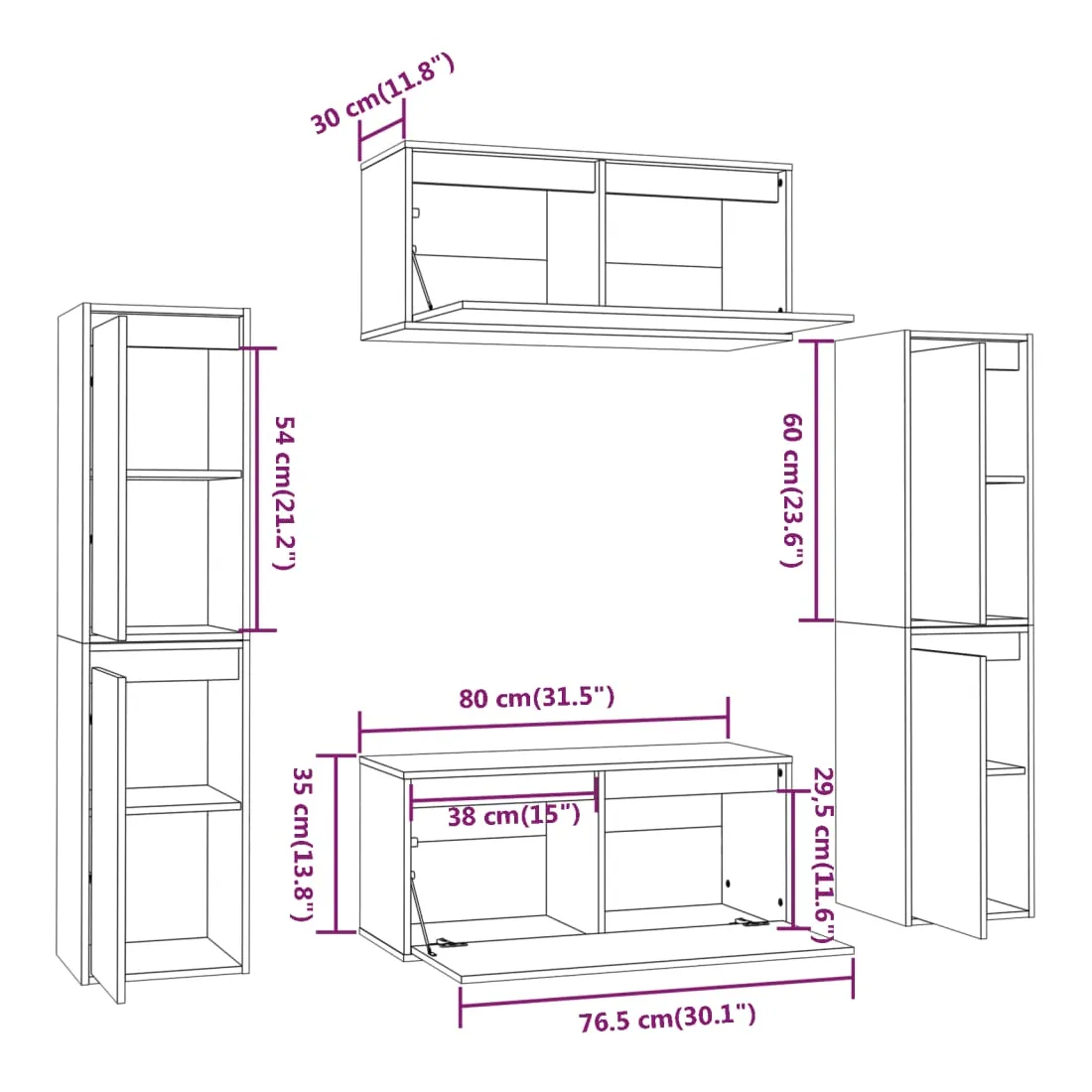 • 4 x meuble TV : 30 x 30 x 60 cm (l x P x H)