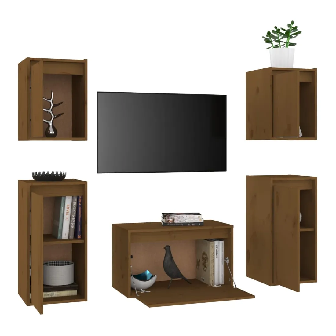 Meubles TV 5 pcs Marron miel Bois massif de pin