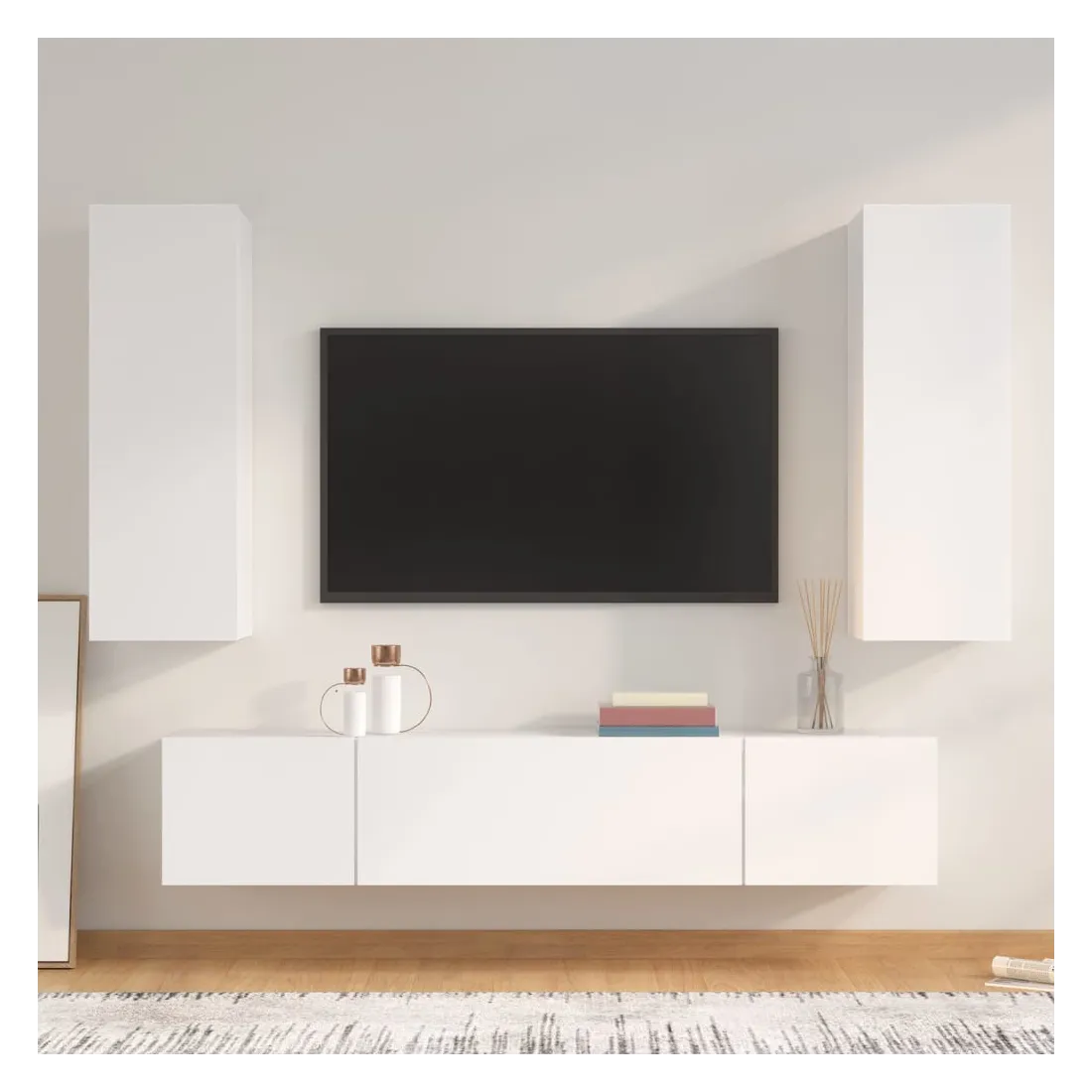 Cet ensemble de meubles TV classique est conçu pour être le point central de votre pièce, avec un design à la fois tendance et pratique. Matériau robuste : le bois d'ingénierie est d'une qualité exceptionnelle avec une surface lisse et présente également résistance, stabilité et résistance à l'humidité. Grand espace de rangement : chaque meuble TV offre un grand espace de rangement pour garder tous vos magazines, DVD et autres articles bien organisés. Design mural : le meuble TV ne prend pas de place au sol. Vous pouvez l'accrocher au mur facilement. Remarque : Les vis et les chevilles pour l'intérieur du mur ne sont pas incluses. Recherchez et utilisez des vis et des chevilles adaptées à vos murs. Si vous n'êtes pas sûr, demandez conseil à un professionnel. Lisez et suivez attentiveme