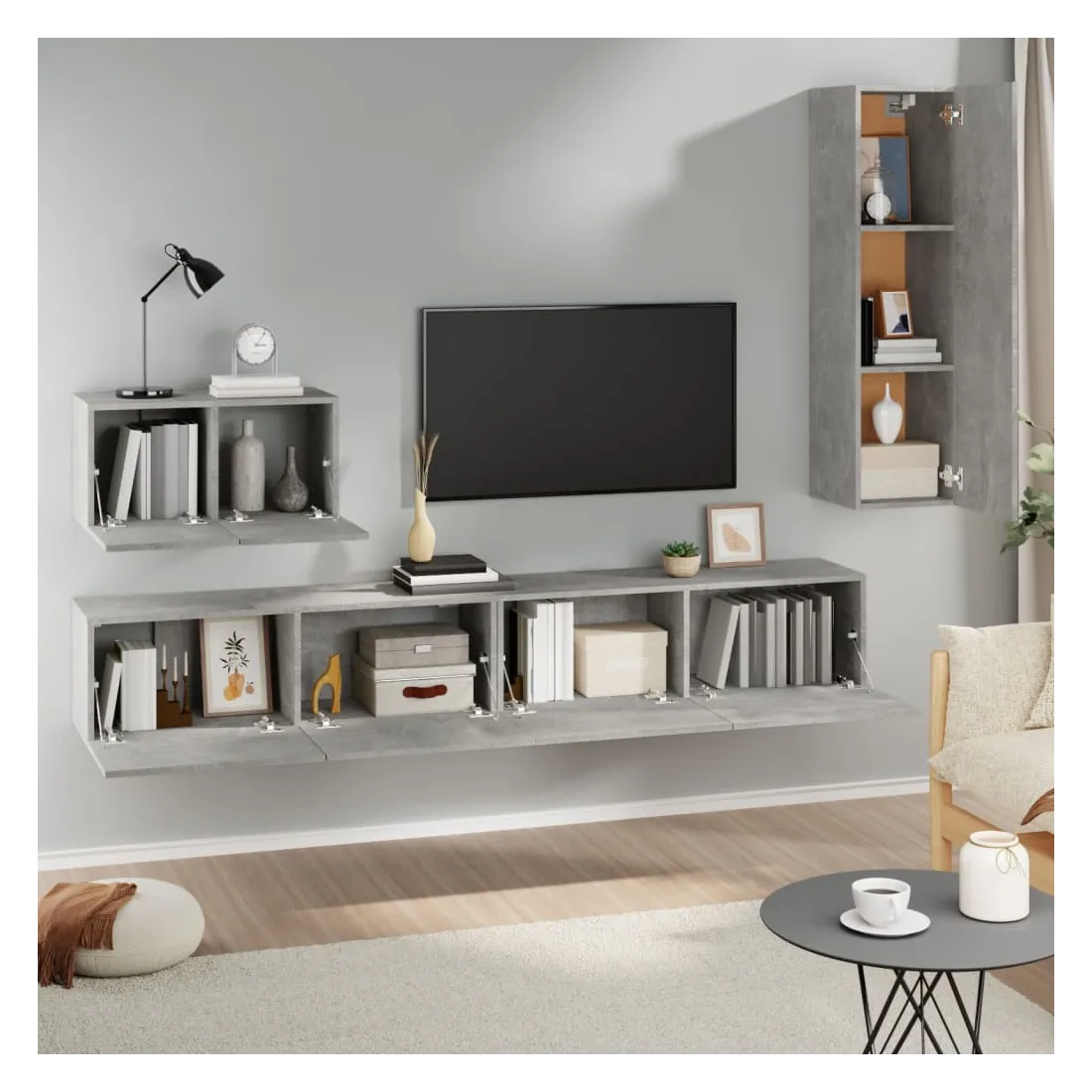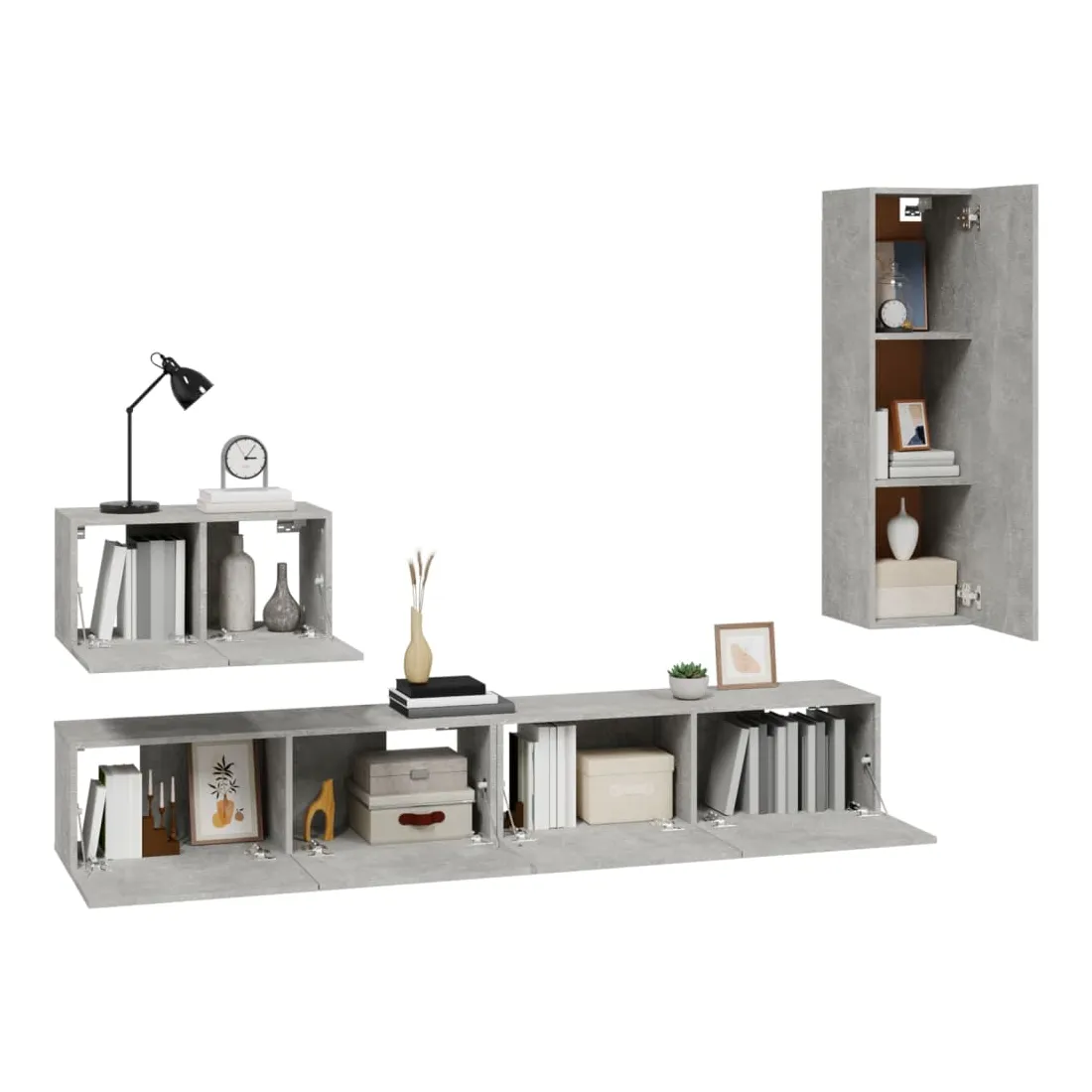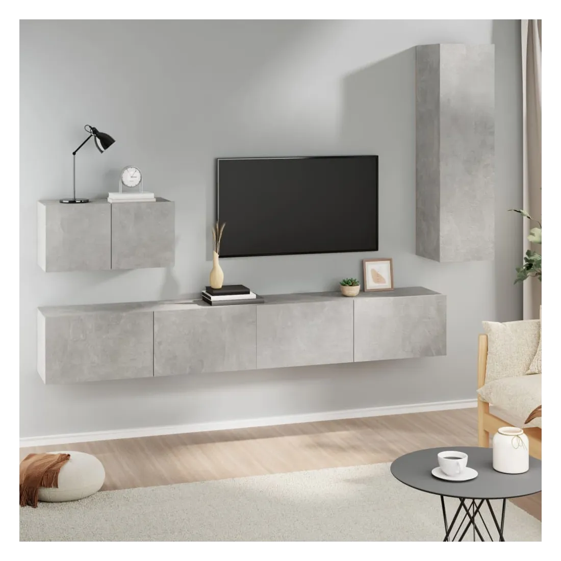 Ensemble de meubles TV 4 pcs Gris béton Bois d'ingénierie