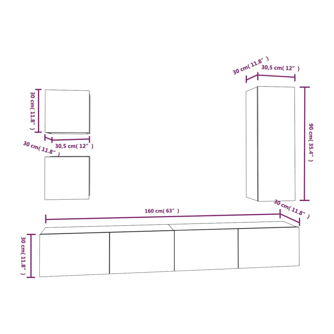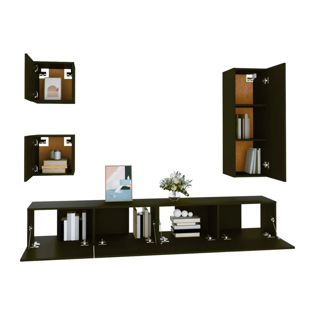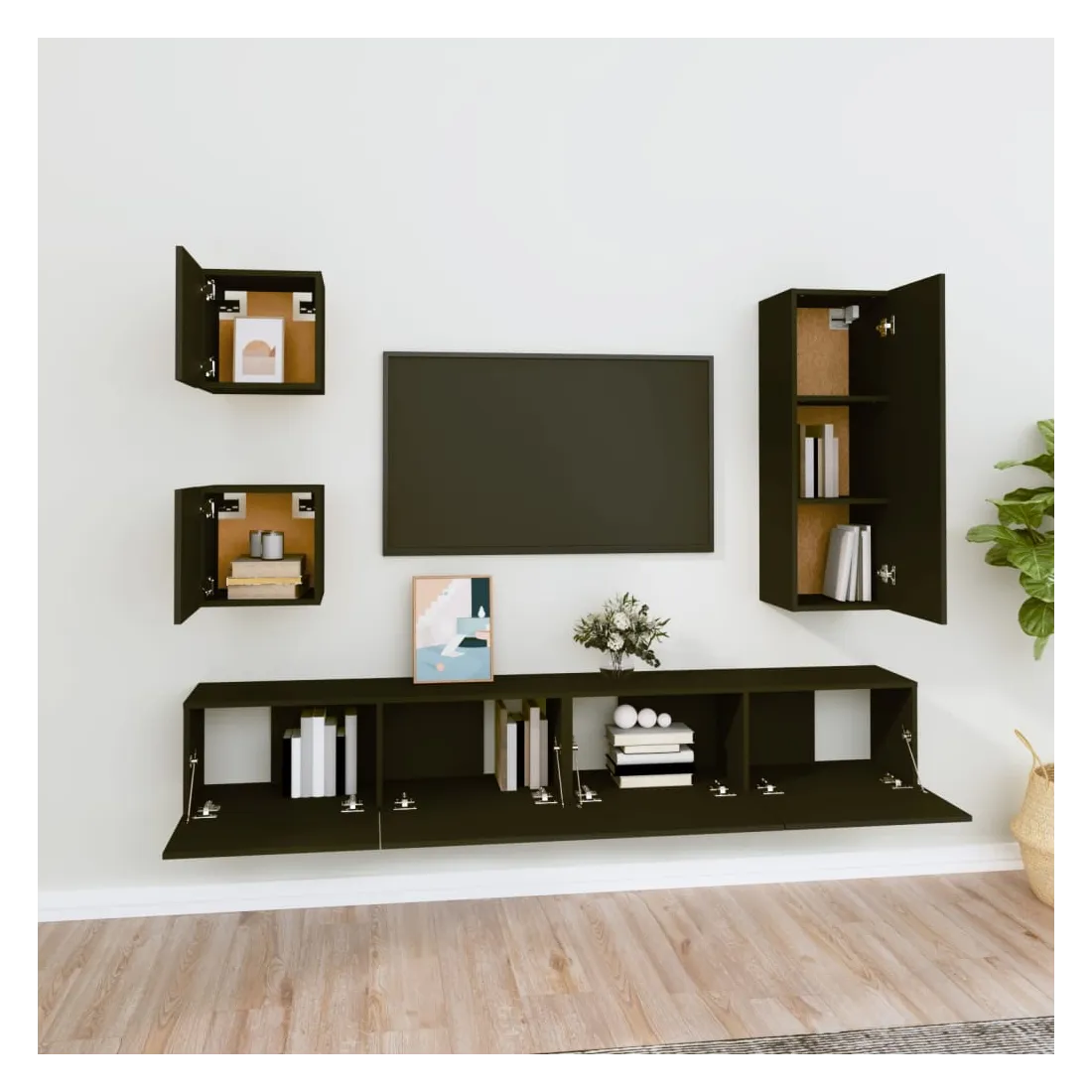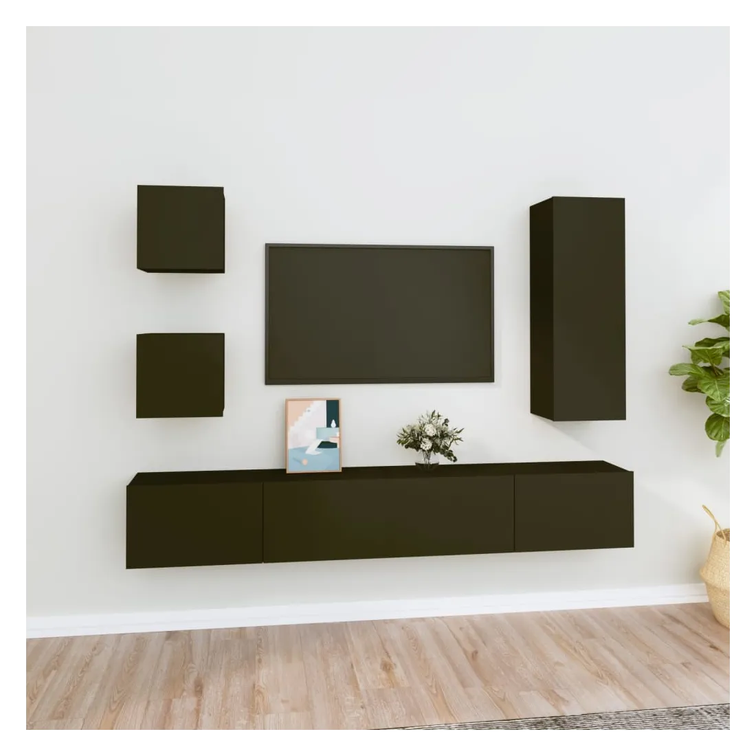 Ensemble de meubles TV 5 pcs Noir Bois d'ingénierie