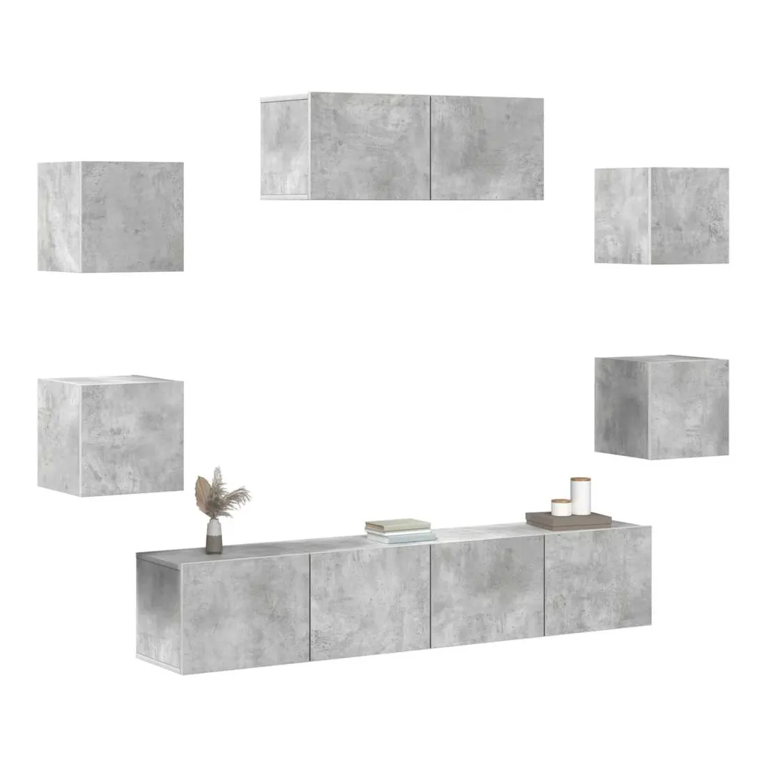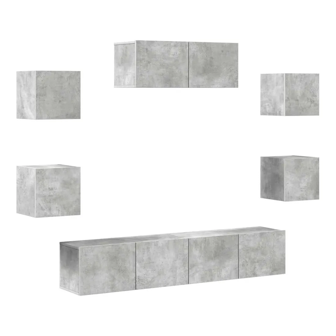 Ensemble de meubles TV 7 pcs Gris béton Bois d'ingénierie