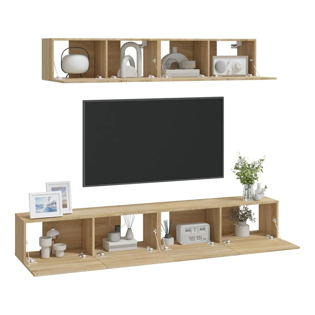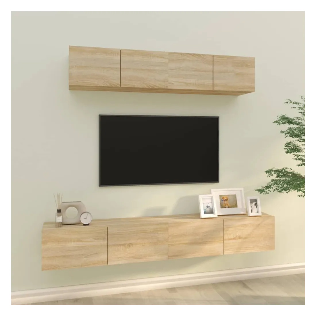 Cet ensemble de meubles TV classique est conçu pour être le point central de votre pièce, avec un design à la fois tendance et pratique. Matériau robuste : le bois d'ingénierie est d'une qualité exceptionnelle avec une surface lisse et présente également résistance, stabilité et résistance à l'humidité.Grand espace de rangement : l'ensemble de meubles TV offre un grand espace de rangement pour garder tous vos magazines, DVD et autres articles bien organisés.Design mural : le meuble TV ne prend pas de place au sol. Vous pouvez l'accrocher au mur facilement. Remarque :Les vis et les chevilles pour l'intérieur du mur ne sont pas incluses. Recherchez et utilisez des vis et des chevilles adaptées à vos murs. Si vous n'êtes pas sûr, demandez conseil à un professionnel. Lisez et suivez attentivement chaque étape des instructions.Chaque produit est livré avec un manuel de montage dans la boîte pour un montage facile.