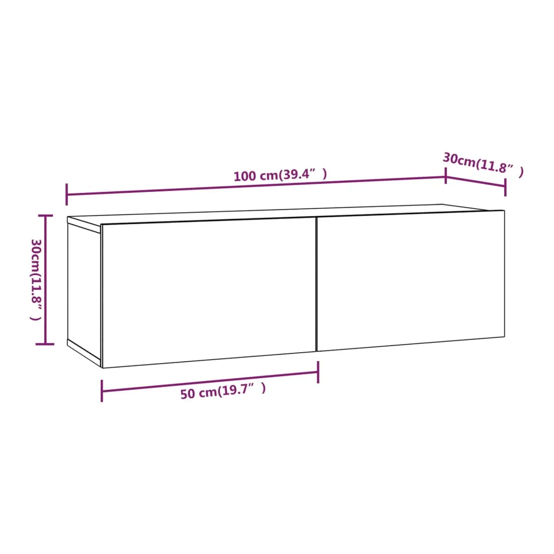 • 2 x meuble TV : 100 x 30 x 30 cm (L x l x H)