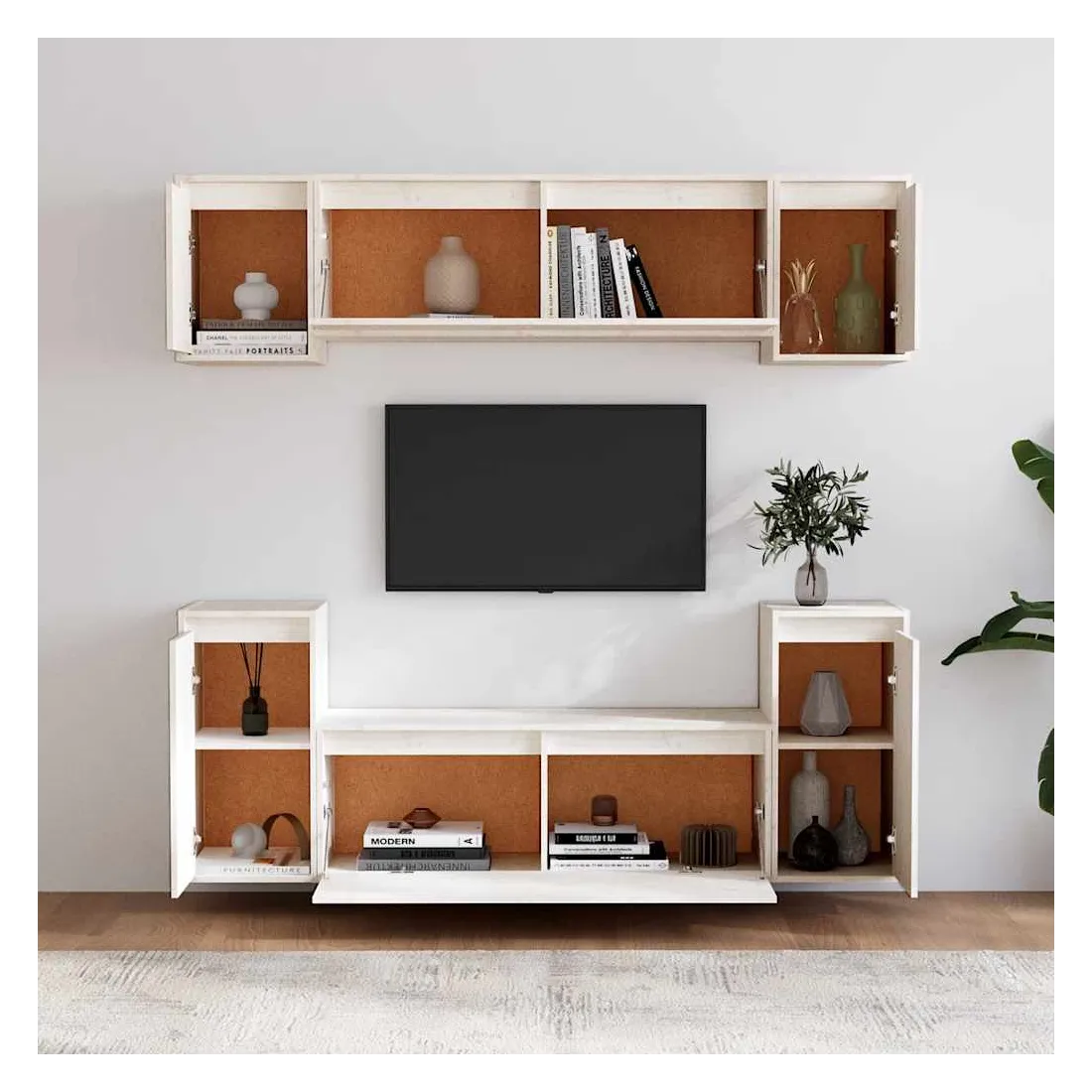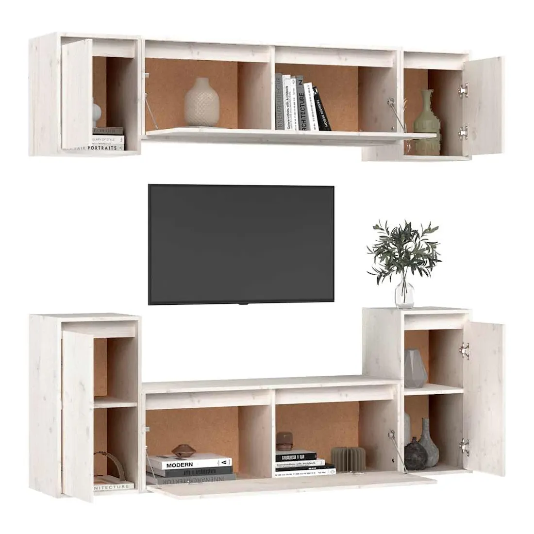 Meubles TV 6 pcs Blanc Bois massif de pin