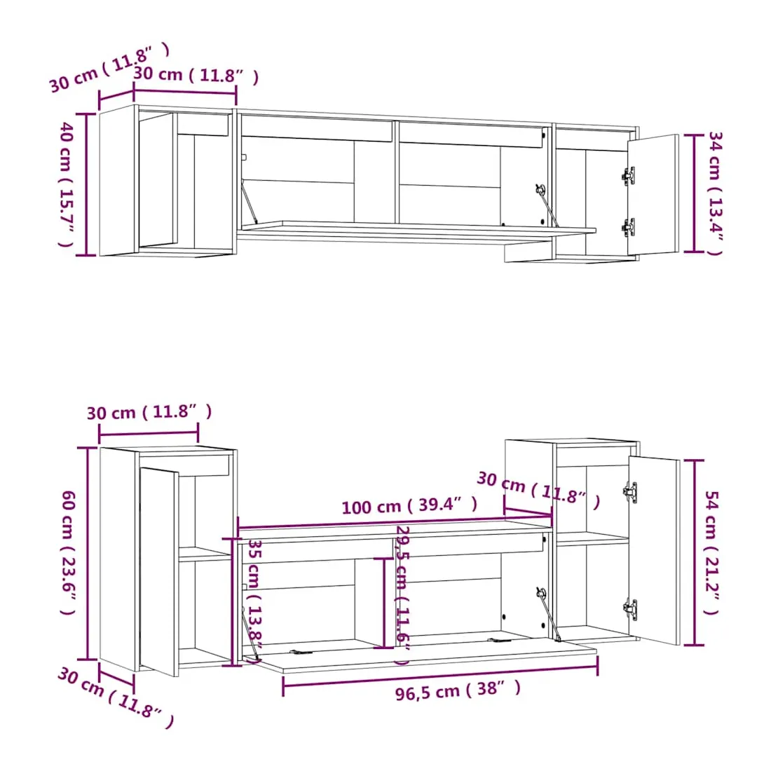 • 2 x meuble TV : 100 x 30 x 35 cm (l x P x H)