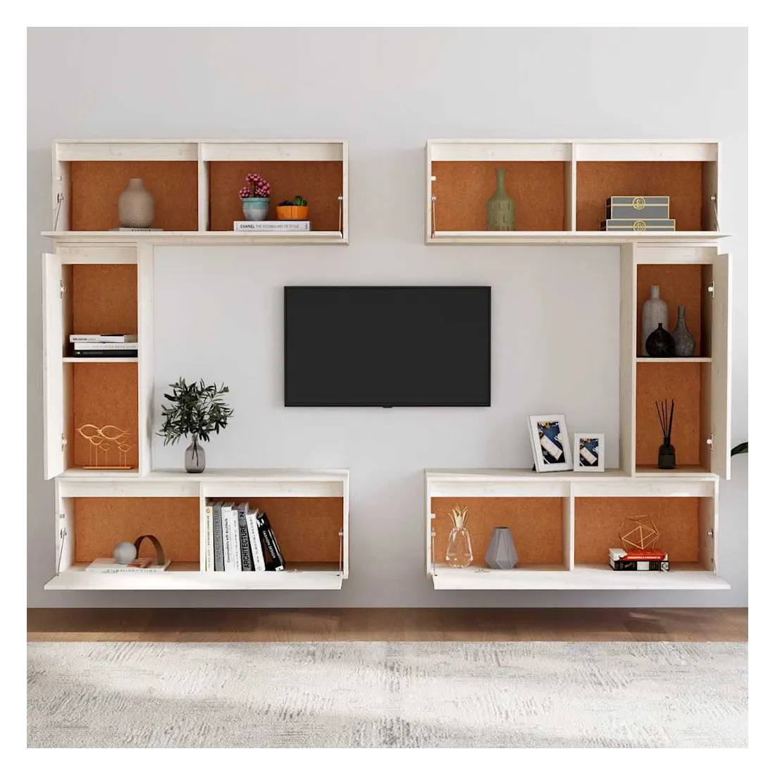 Ces meubles TV classiques sont conçus pour être le point de mire de votre pièce avec un design à la fois tendance et pratique. Ces armoires suspendues sont fabriquées en bois de pin massif, ce qui garantit leur solidité, durabilité et longévité. Les unités murales sont l'endroit idéal pour ranger des objets tels que des livres, des objets de collection, des bibelots, etc. Elles transforment un mur vide en une caractéristique de conception. De plus, les armoires flottantes sont faciles à nettoyer avec un chiffon humide. Veuillez noter : Les vis et les chevilles pour l'intérieur du mur ne sont pas incluses. Recherchez et utilisez des vis et des chevilles adaptées à vos murs. Si vous n'êtes pas sûr, demandez conseil à un professionnel. Lisez et suivez attentivement chaque étape de l'instr