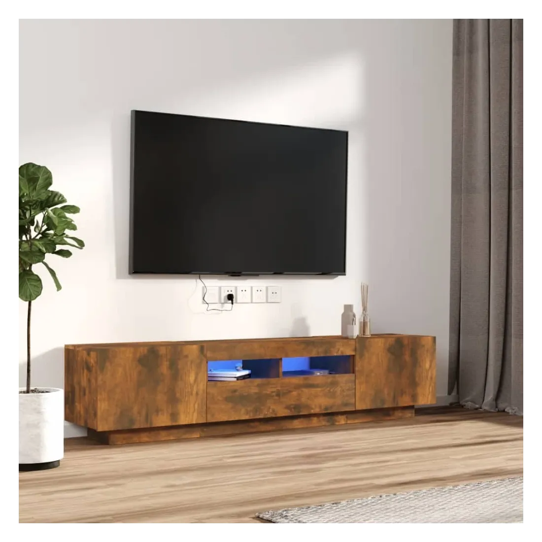 Ces meubles TV élégants et pratiques avec lumières LED ancreront votre espace de vie dans un charme ultra contemporain ! Matériau pratique : le bois d'ingénierie est d'une qualité exceptionnelle avec une surface lisse et présente également résistance, stabilité et résistance à l'humidité. Lumières LED RVB : le meuble TV est doté de lumières LED RVB, qui ont différents menus pour changer la couleur des lumières et laisser la couleur s'ajuster automatiquement. Les lumières LED soulignent le look moderne et contribuent à l'ambiance tendance. Rangement ample : il reste beaucoup d'espace dans le meuble TV pour ranger soigneusement votre lecteur DVD, votre console de jeu, votre appareil de streaming et vos supports multimédias. Remarque : Ce produit est doté d'un connecteur USB, mais la sour